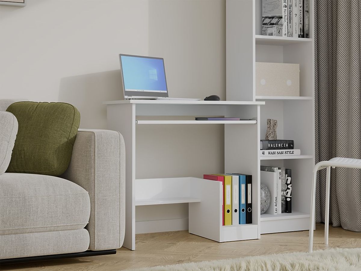 Mebel wyposażony jest w praktyczne rozwiązania zwiększające komfort pracy: wygodną wysuwaną półkę na klawiaturę, miejsce na jednostkę centralną komputera lub segregatory oraz dodatkową dolną półkę do przechowywania.
