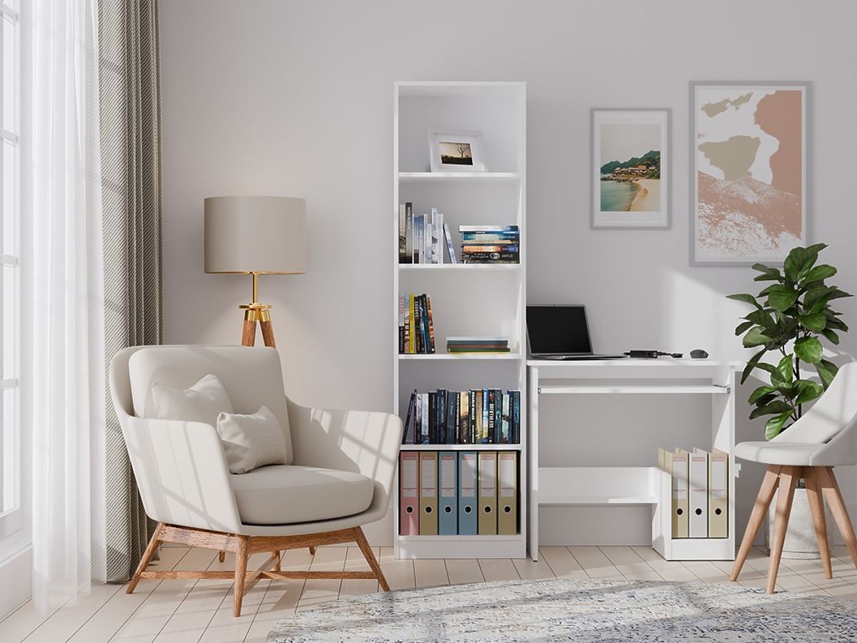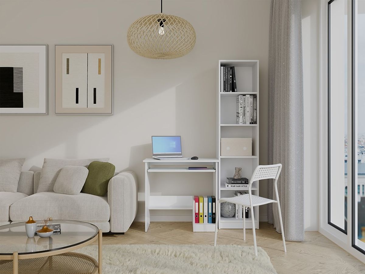 Biurko ROSA to kompaktowy i jednocześnie bardzo funkcjonalny mebel, który doskonale sprawdzi się w małych przestrzeniach - zarówno w pokoju dziecięcym, studenckim, jak i w domowym biurze. Dzięki minimalistycznemu designowi i matowej bieli biurko idealnie pasuje do nowoczesnych wnętrz i optycznie powiększa przestrzeń.