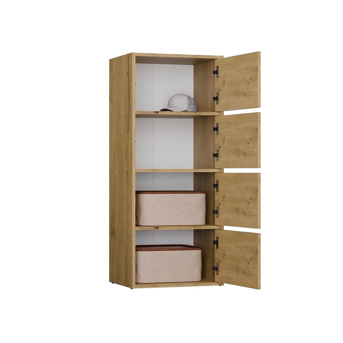 Dzięki przestronnym półkom ukrytym za gładkimi drzwiami, komoda oferuje dużo miejsca do przechowywania i ułatwia utrzymanie porządku w każdym pomieszczeniu.