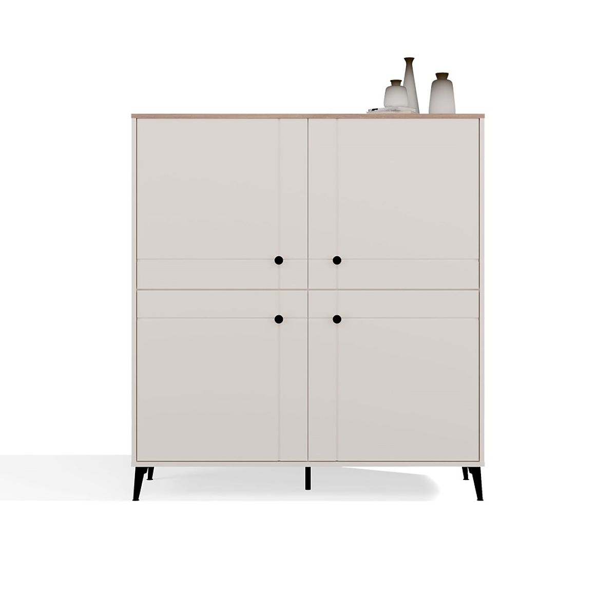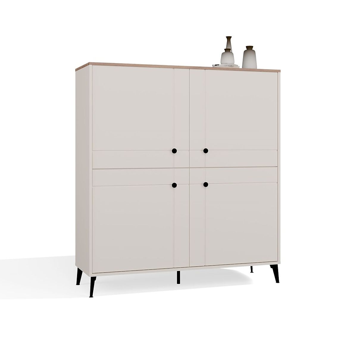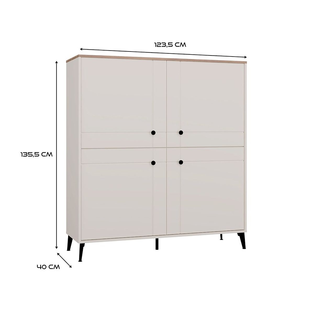 Model wyposażony jest w cztery fronty z cichym zamykaniem, za którymi kryje się aż osiem praktycznych półek – idealnych do przechowywania książek, dokumentów, tekstyliów lub codziennych dodatków.