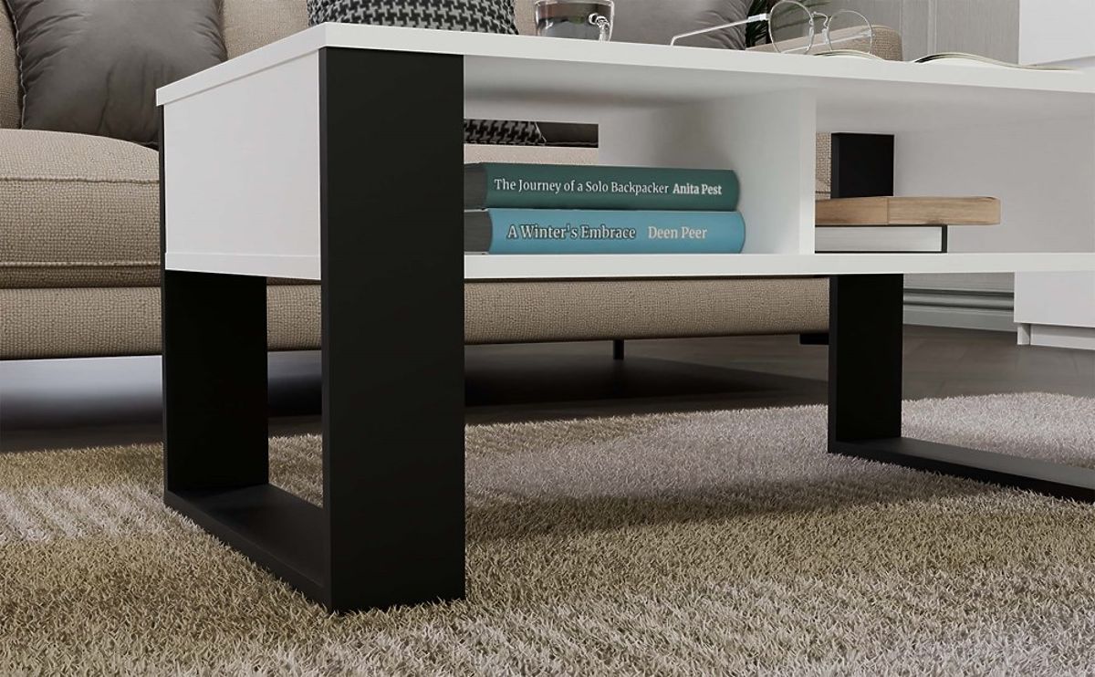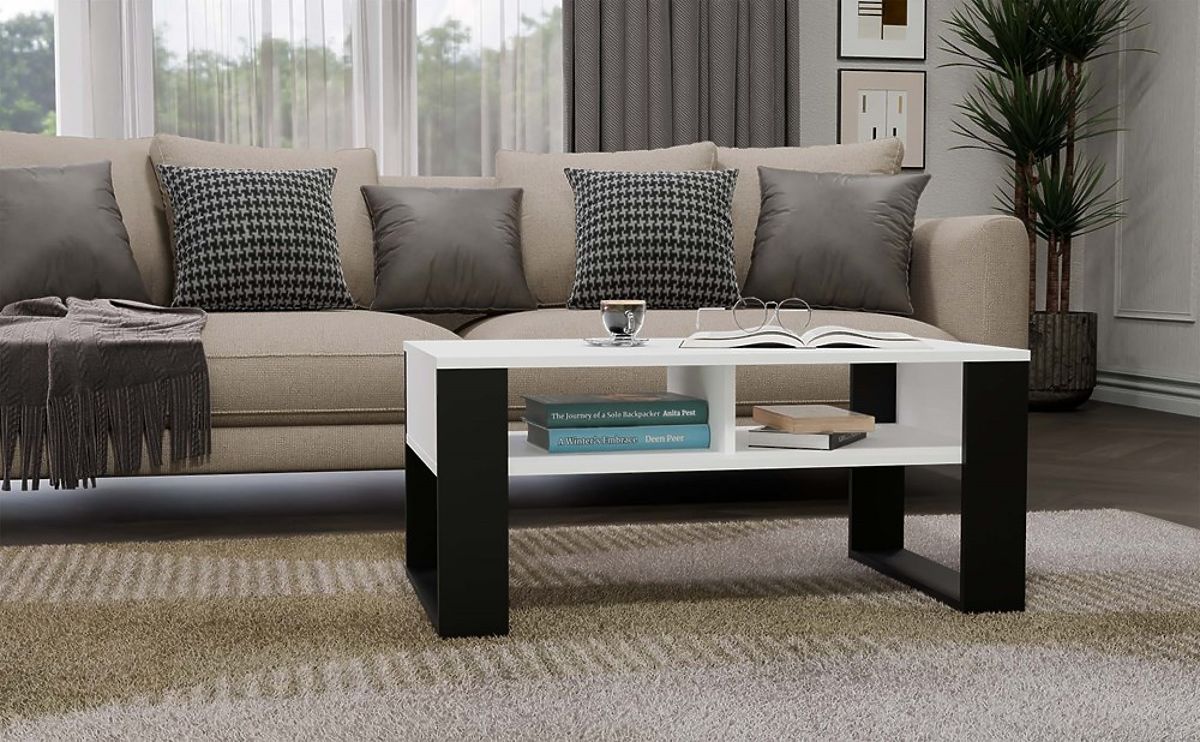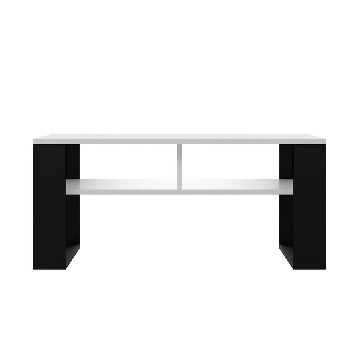 Stolik konferencyjny z dwoma półkami, biały i czarny, idealny do salonu. .. więcej