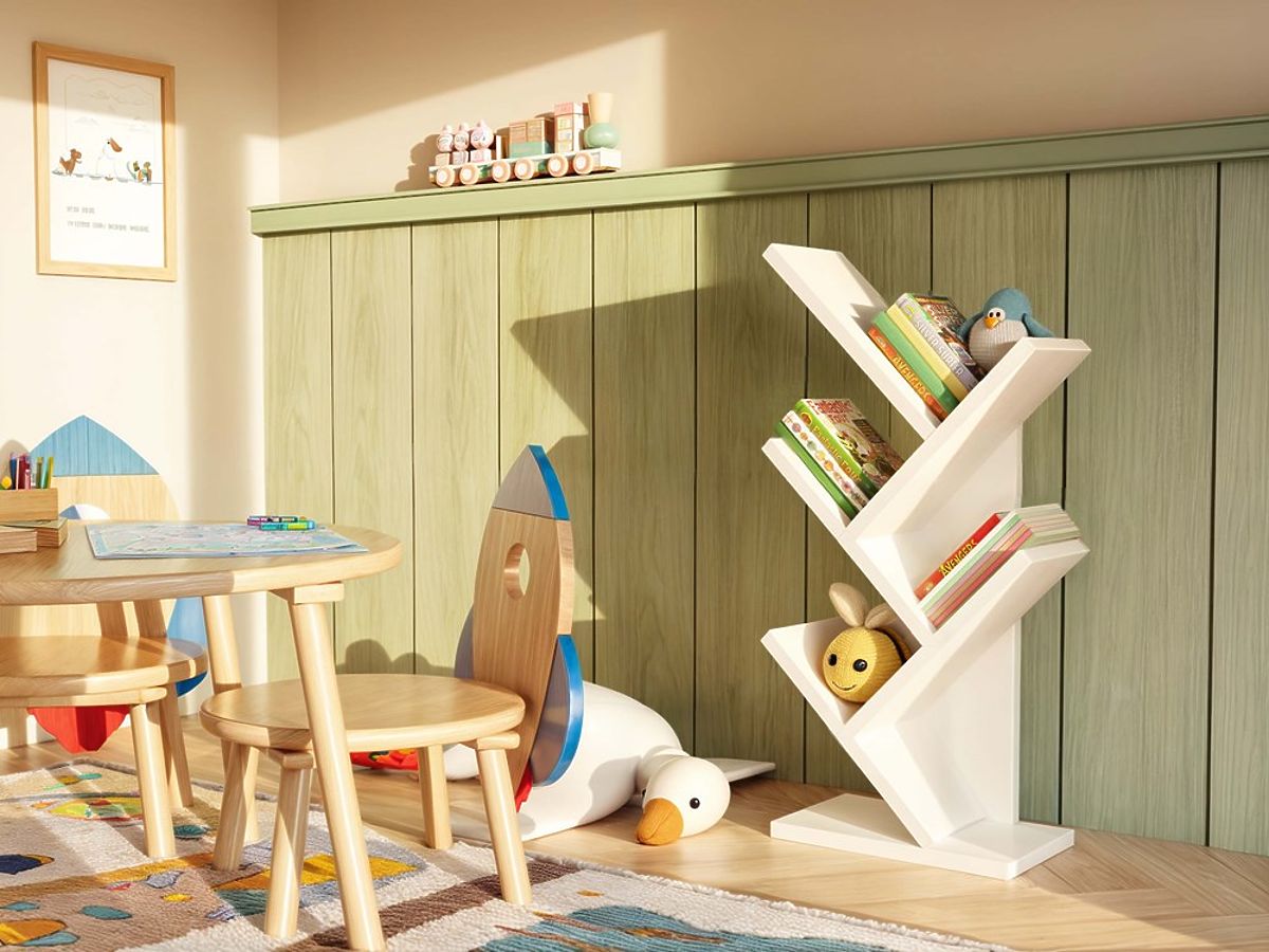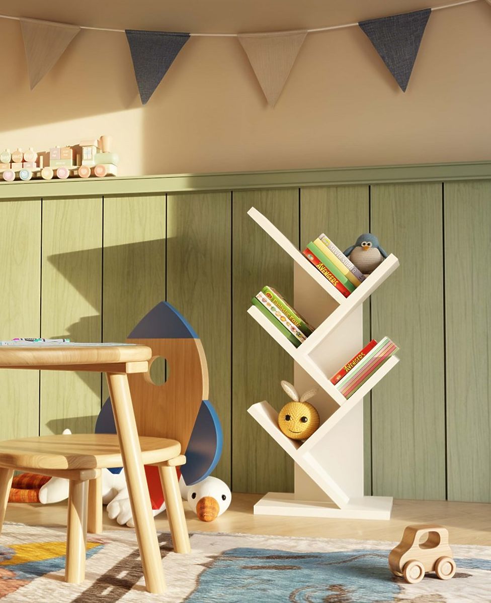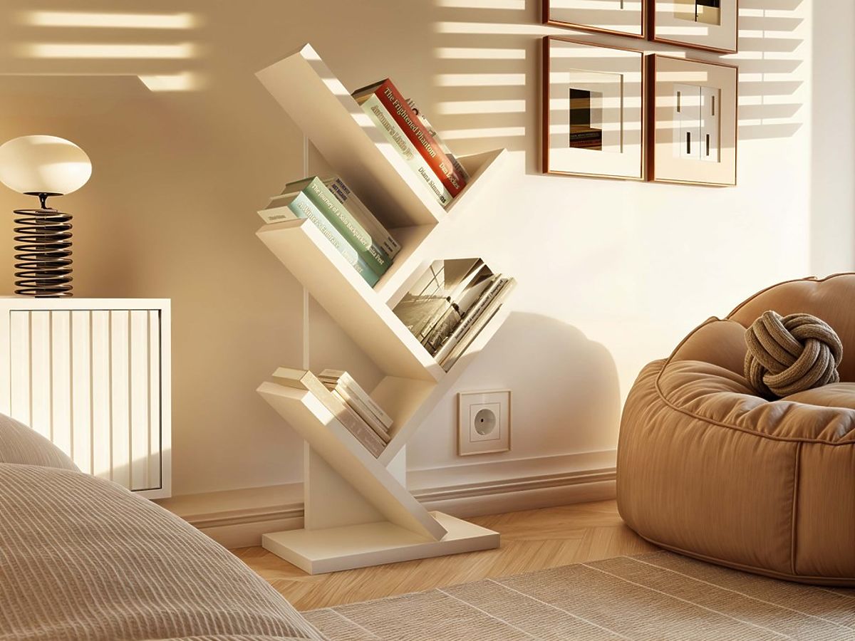4 skośne otwarte półki – idealne na książki, segregatory, dekoracje lub zabawki