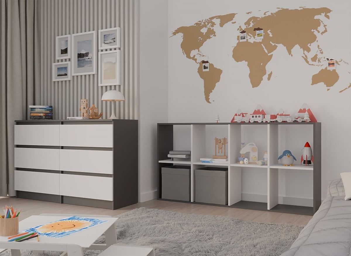 Dokładamy wszelkich starań, aby kolory mebli prezentowane na zdjęciach były jak najdokładniej odwzorowane. Należy jednak pamiętać, że ich odbiór może się różnić w zależności od indywidualnych ustawień monitora lub ekranu (takich jak jasność, kontrast, temperatura barwowa lub technologia wyświetlania). Rzeczywisty odcień produktu może również różnić się w zależności od warunków oświetleniowych.