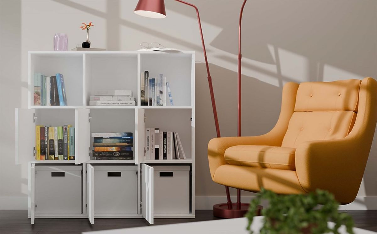 9 identycznych komór – idealnych na książki, pudełka, dokumenty, zabawki lub dekoracje
