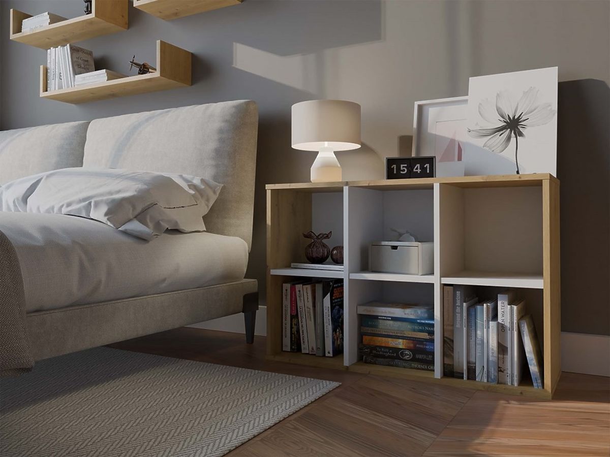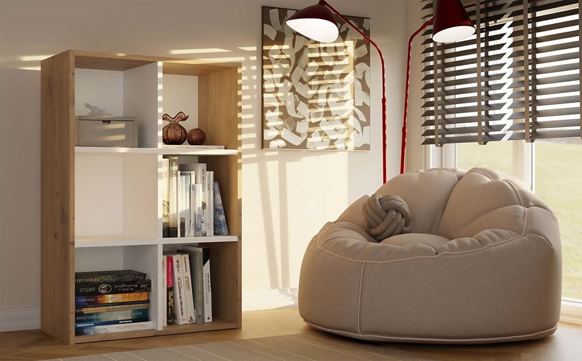 - Funkcjonalne rozmieszczenie komór – idealne na książki, zabawki, segregatory i dekoracje