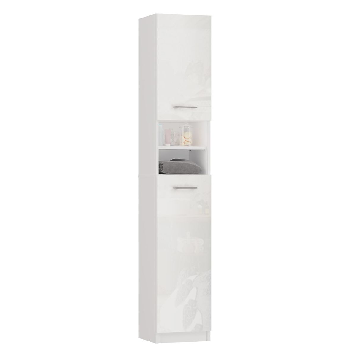Nowoczesna szafka łazienkowa w białym połysku z praktycznym słupkiem. .. więcej