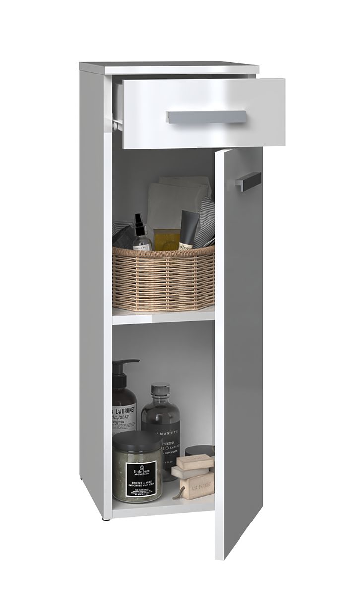 Szafka łazienkowa z szufladą i drzwiami, biały połysk. .. więcej