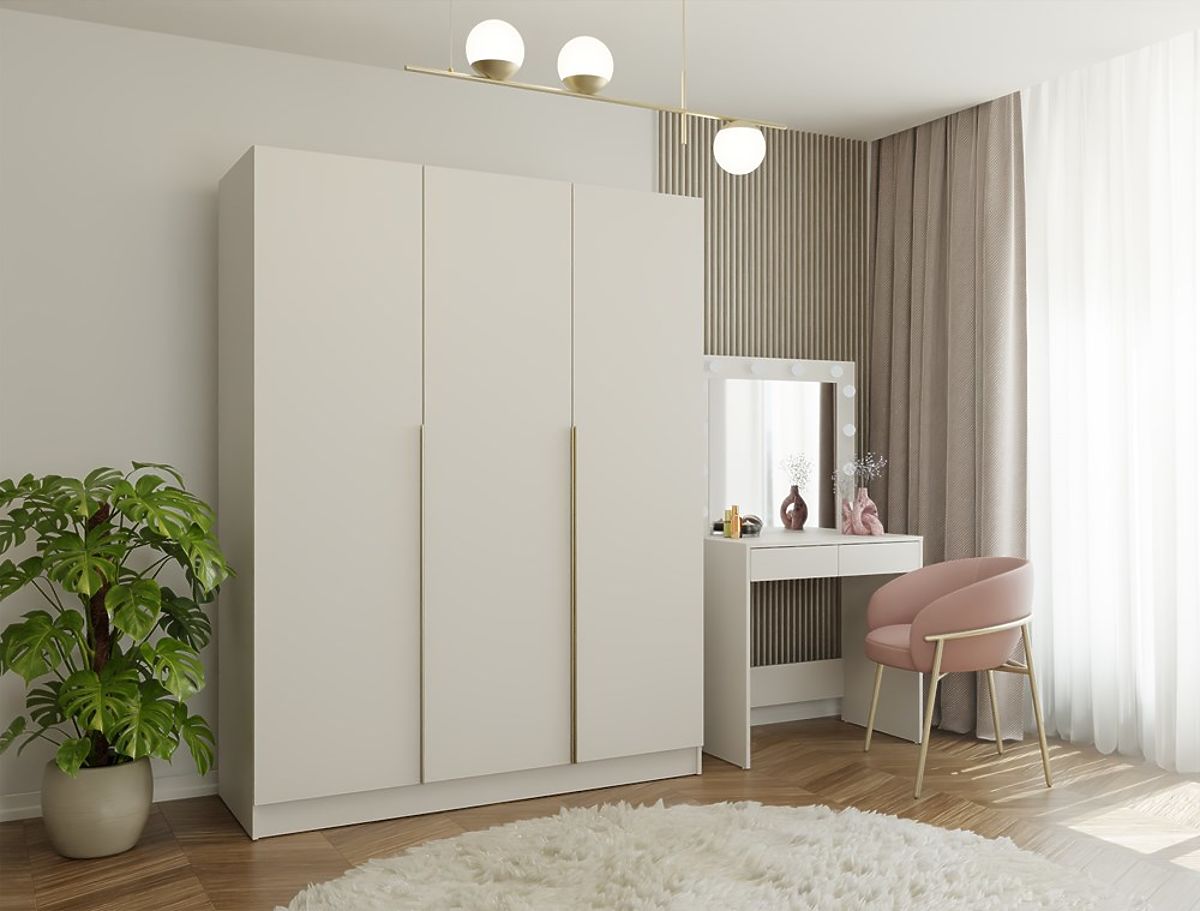 SZAFKA SENSO 3D 150 CM 3 DRZWI ZŁOTE UCHWYTY DO SALONU SYPIALNI KASZMIR BEŻOWA