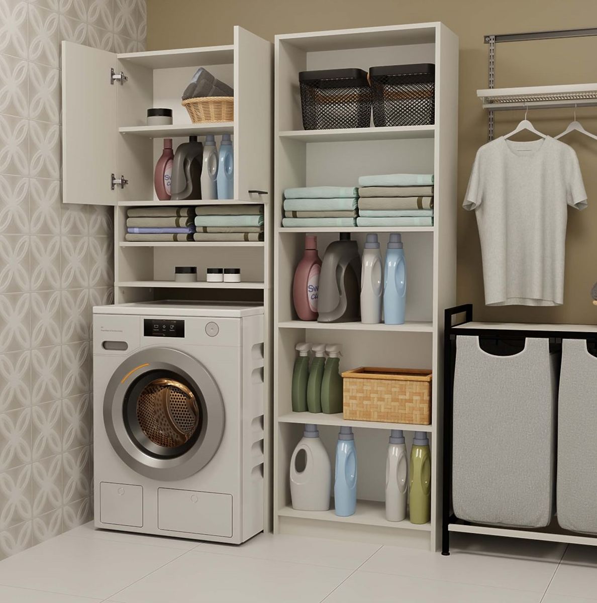 Przestronny wnęka dostosowana do standardowych pralek (szerokość 60,8 cm, wysokość 90,5 cm).