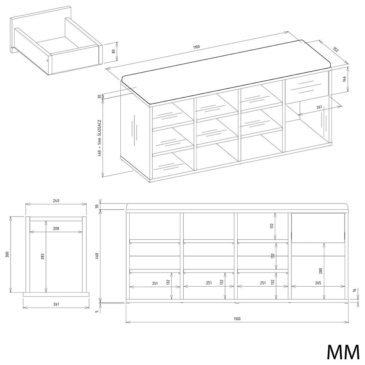 Szafka na buty TALLIN z siedziskiem i szufladą do przedpokoju. .. więcej