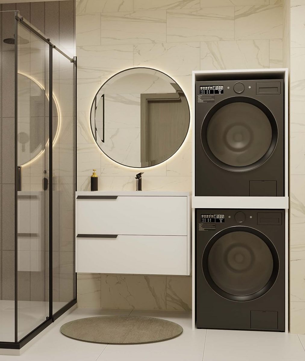 Szafka POLA TWIN oszczędza miejsce w łazience, umożliwiając pionowe ustawienie pralki i suszarki. .. więcej