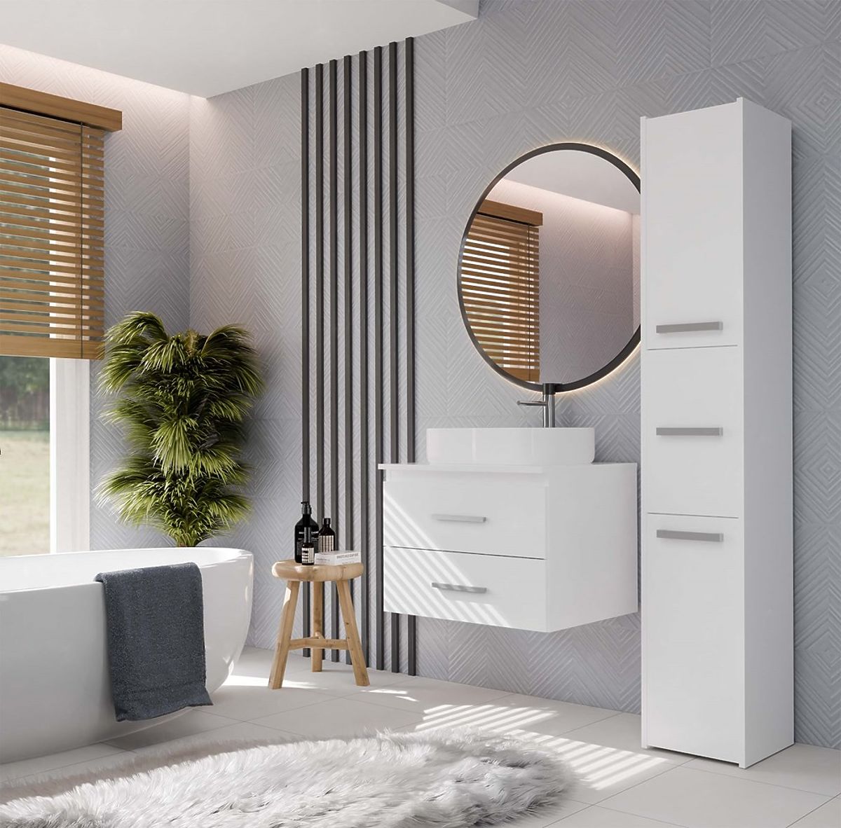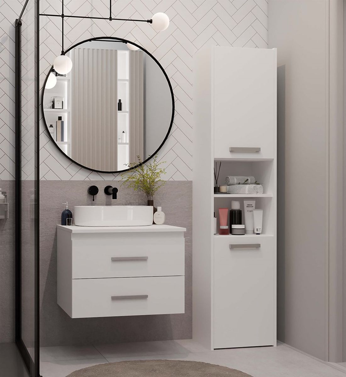 NEL 60 to kompaktowa i praktyczna szafka łazienkowa, która doskonale pasuje do nowoczesnych wnętrz, zarówno większych, jak i mniejszych.