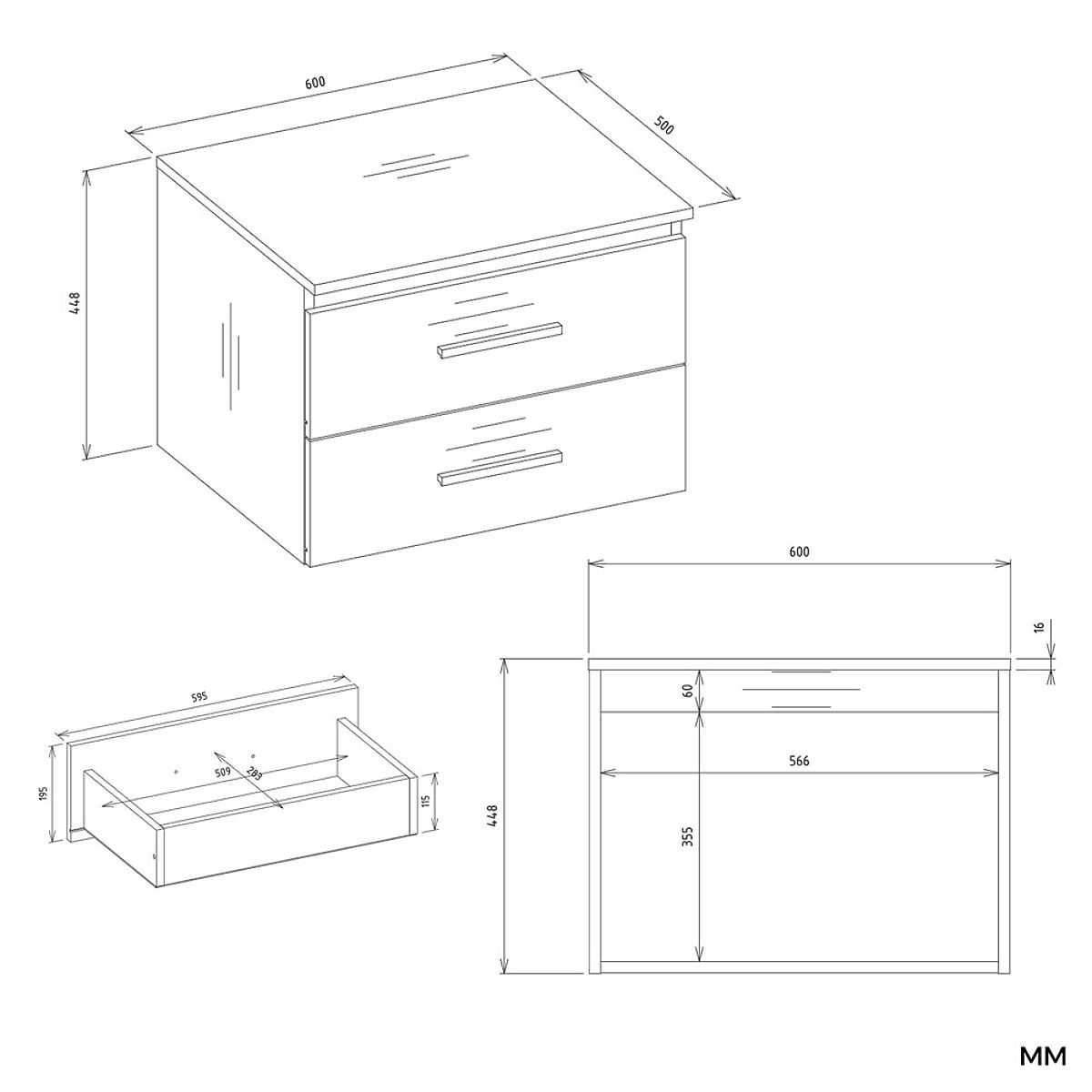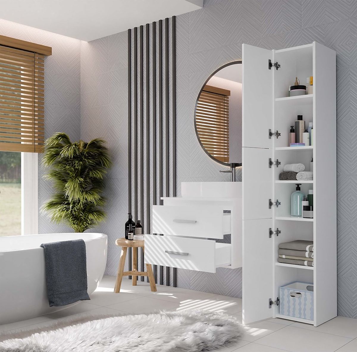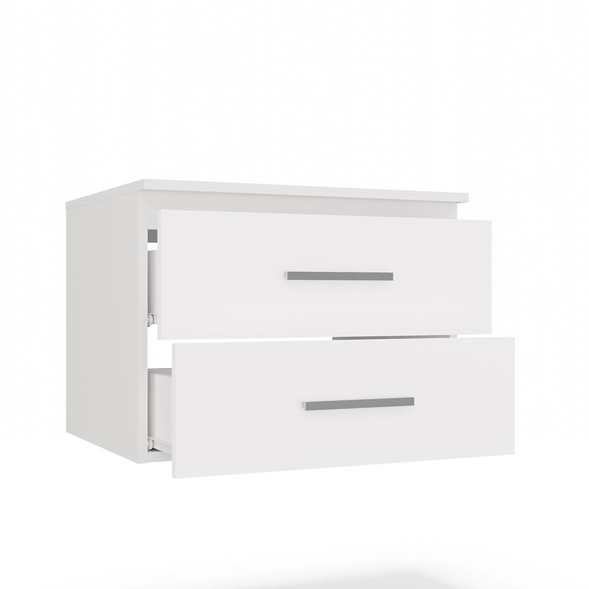 Mebel wyposażony jest w dwie przestronne szuflady, idealne do przechowywania kosmetyków, ręczników lub innych akcesoriów łazienkowych. Obie szuflady mają pełną głębokość – nie posiadają wycięć na syfon. Zastosowanie syfonu ściennego pozwala na pełne wykorzystanie ich przestrzeni.
