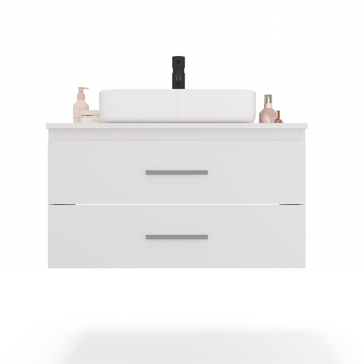 Szafka została zaprojektowana jako podstawa pod umywalkę nablatową (umywalka nie jest częścią zestawu – należy ją wybrać osobno według własnych preferencji).