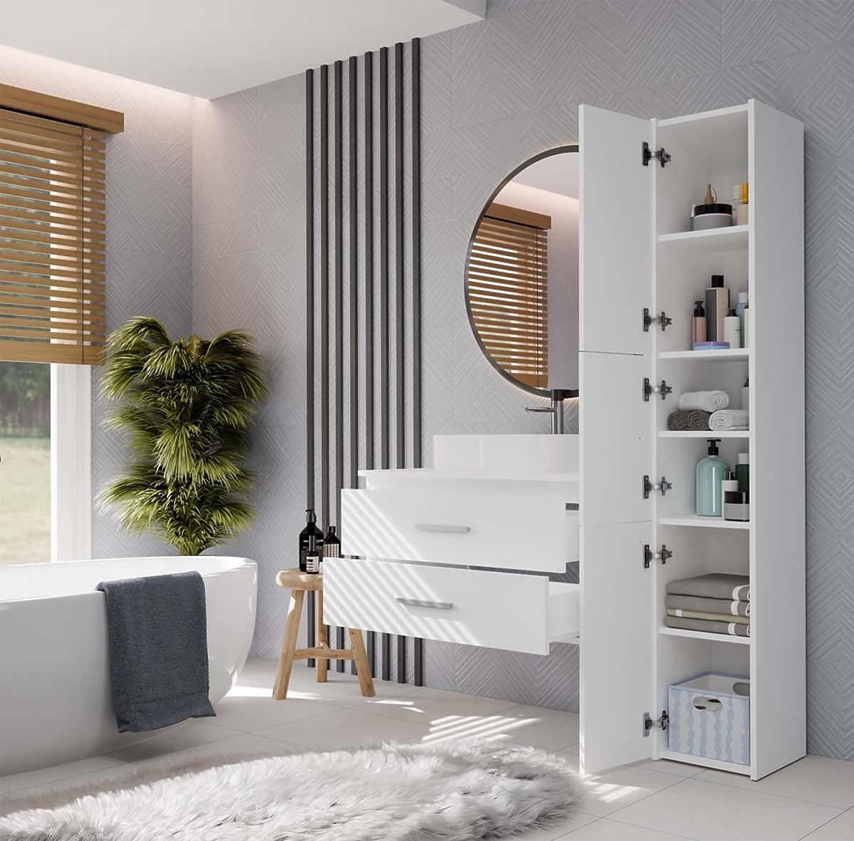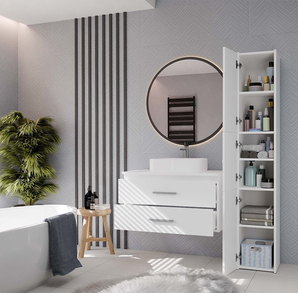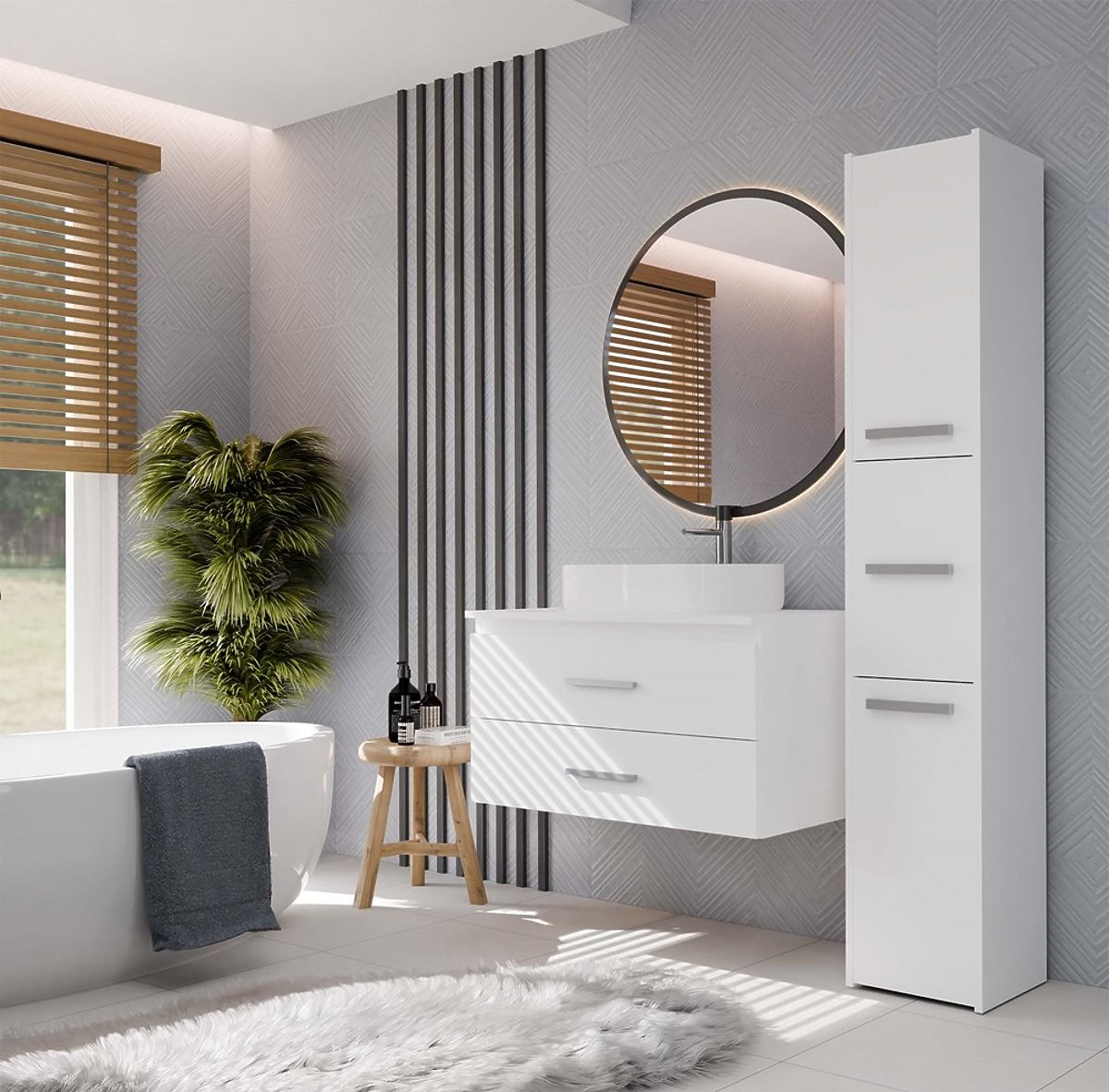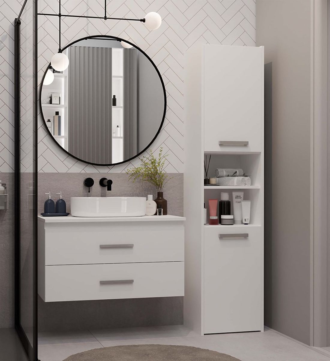 NEL 80 to praktyczna szafka łazienkowa, która doskonale pasuje do nowoczesnych wnętrz, zarówno średnich, jak i mniejszych.