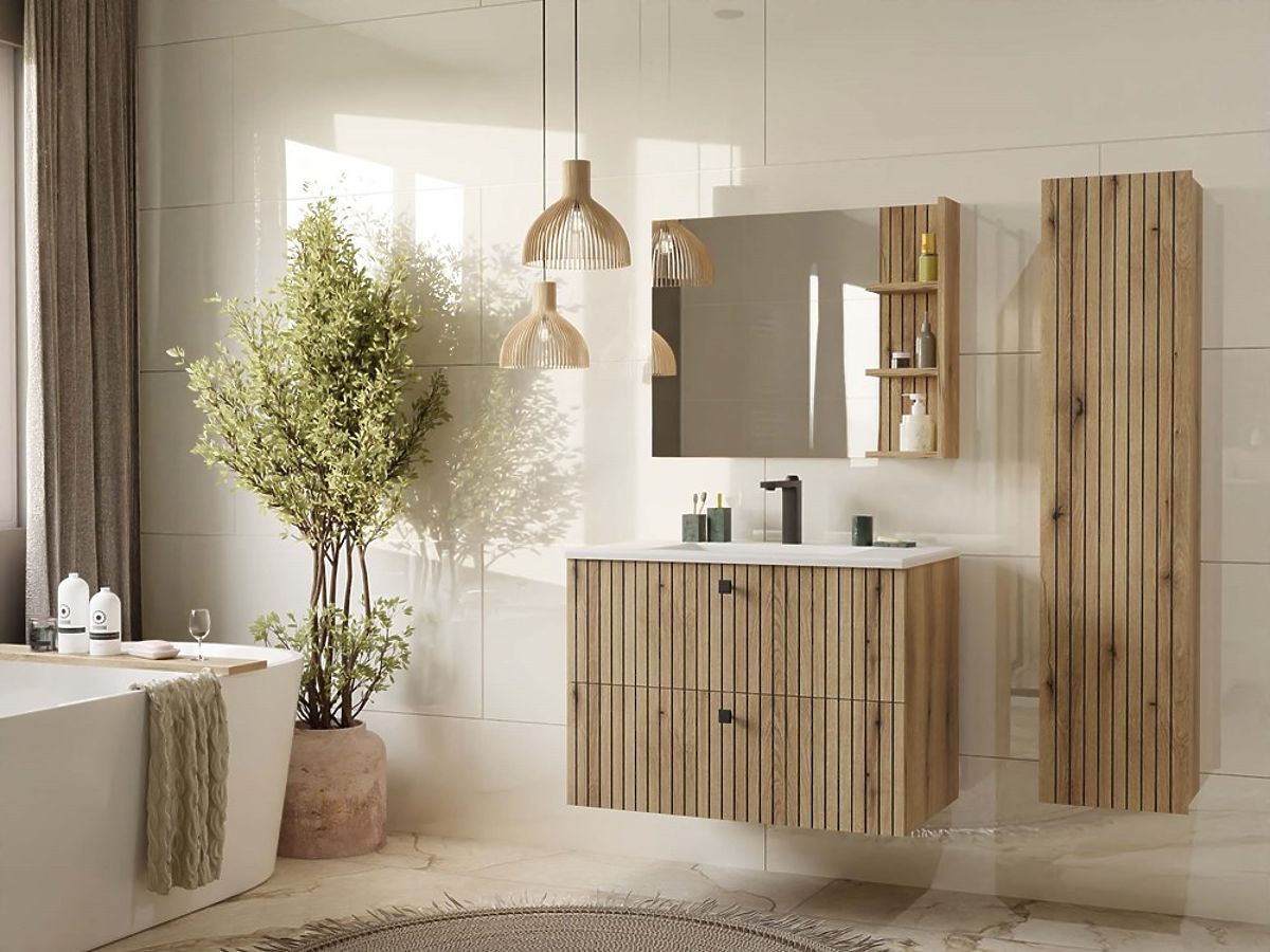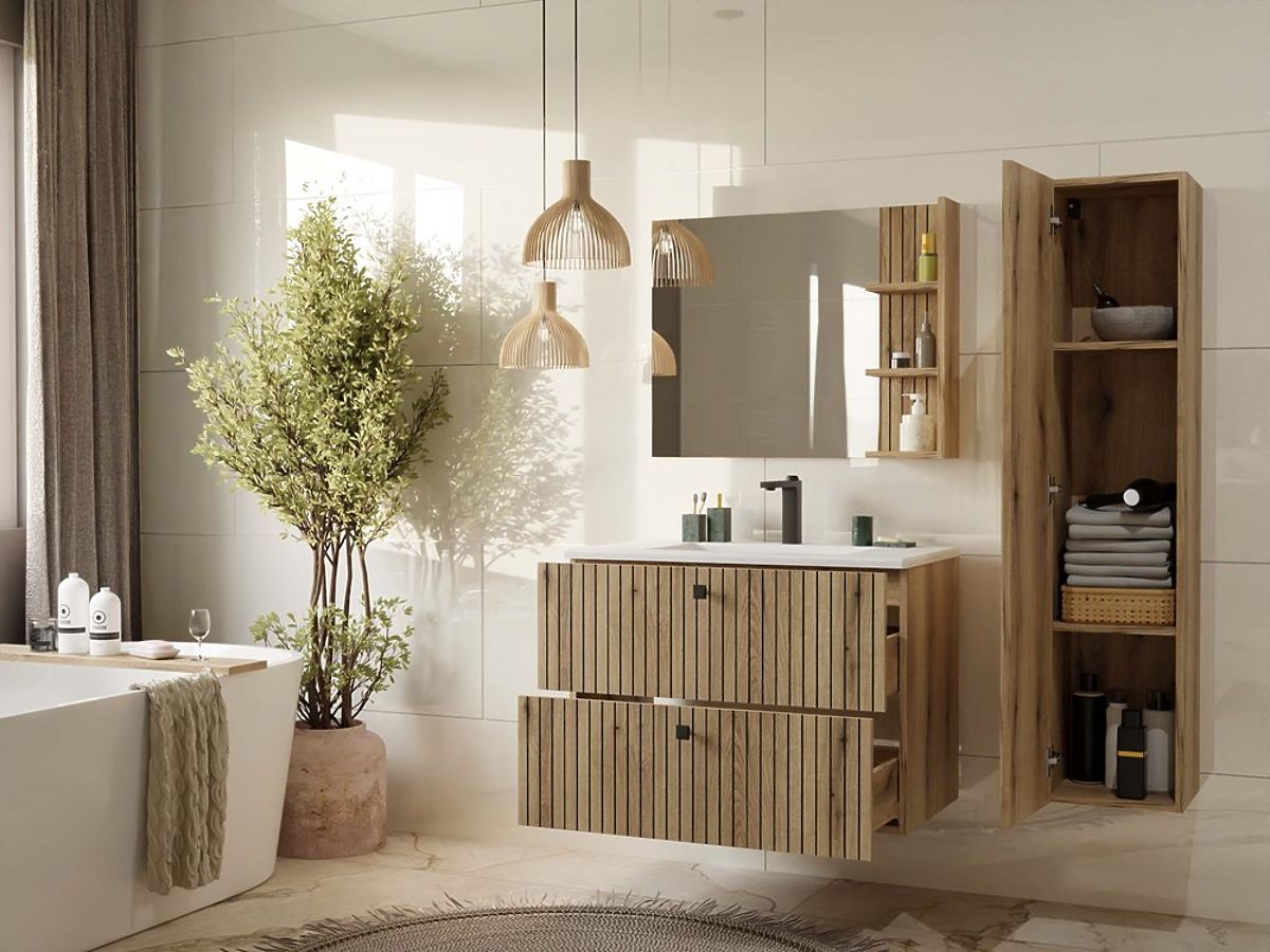 Lukahome.pl » Łazienka i toaleta / Szafki łazienkowe / SZAFKA POD UMYWALKĘ TIGO 80 2S DĄB EVOKE 2 SZUFLADY ŻŁOBIONY FRONT WISZĄCA