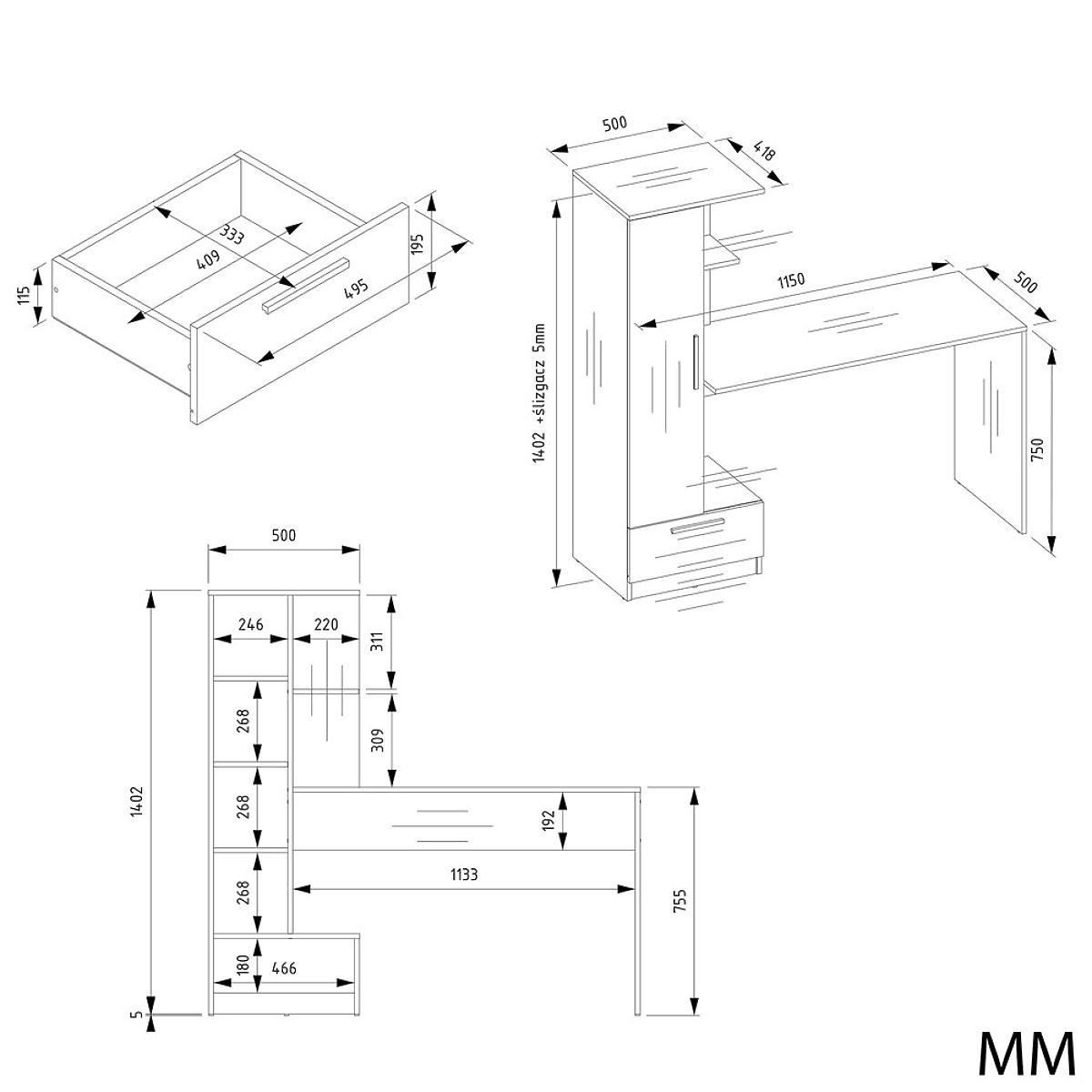 Konstrukcja: Biurko z wysokim regałem i szufladą