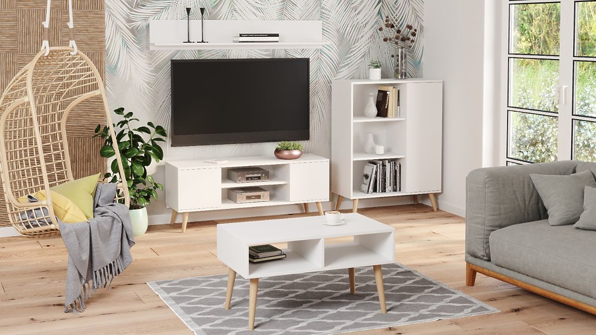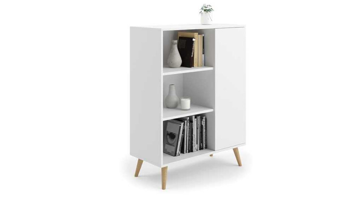 Funkcjonalny regał w stylu skandynawskim z przestronnymi półkami. .. więcej