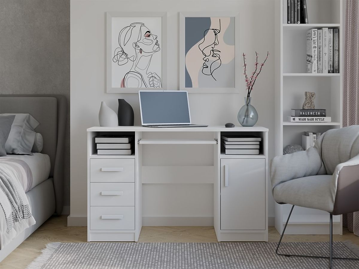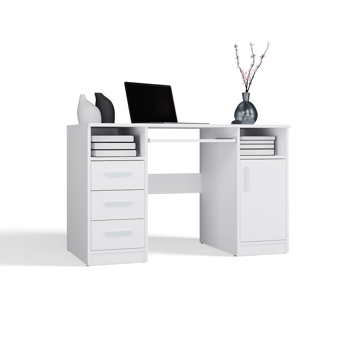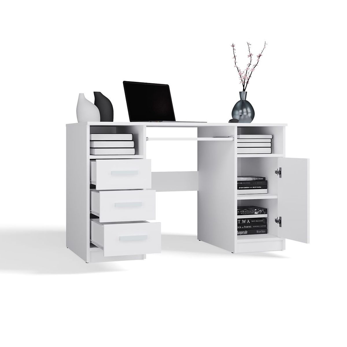 BIURKO DELTA BIAŁE 120 cm 3 Szuflady Szafka Półki Do Biura Pokój Na Laptopa