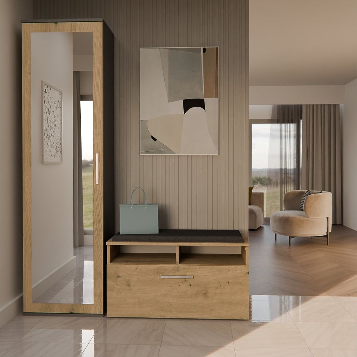 Duża szafa z lustrem w kolorze dąb artisan. .. więcej