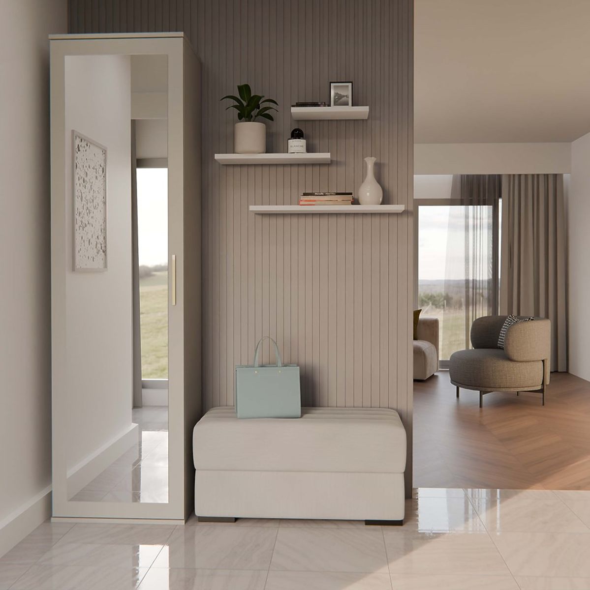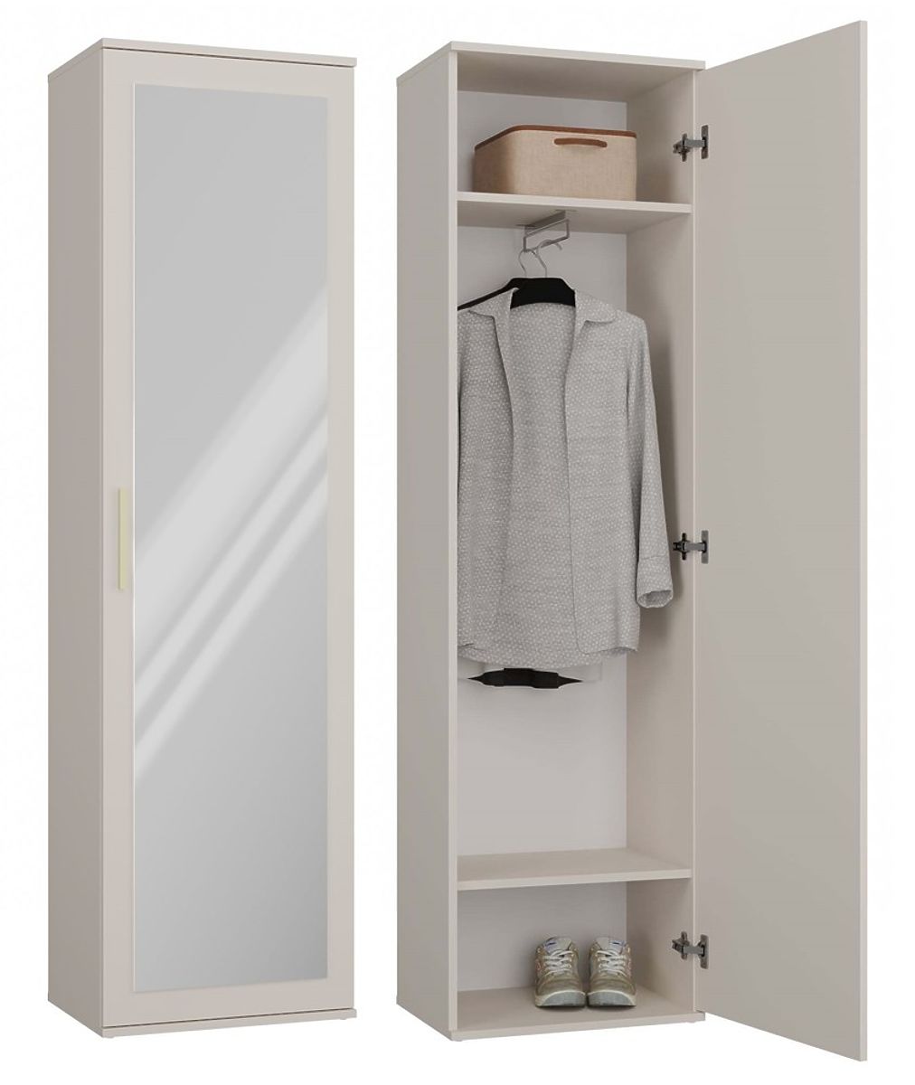 Drzwi z Lustrem: Drzwi szafy pokryte lustrem, co optycznie powiększa przestrzeń i dodaje wnętrzu elegancji.