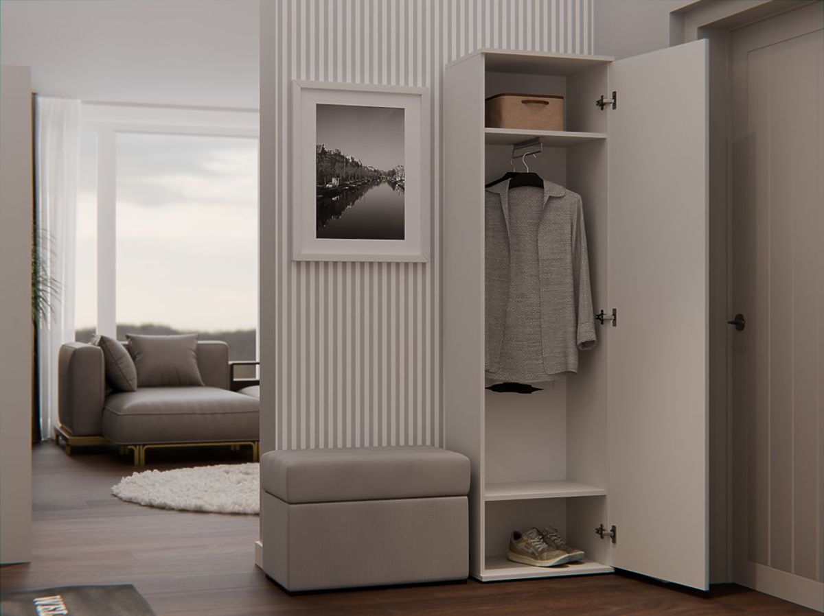 Wielofunkcyjność: Szafa doskonale pasuje zarówno do przedpokoju, sypialni, jak i pokoju dziecięcego.