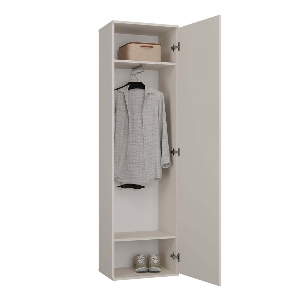Praktyczne Wnętrze: Wyposażona w dwie przestronne półki i drążek na wieszaki, co umożliwia wygodne przechowywanie ubrań i dodatków.
