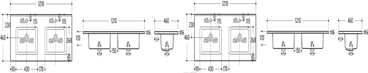 Lukahome.pl » Łazienka i toaleta / Zlewy / Dwukomorowa umywalka meblowa 120 cm