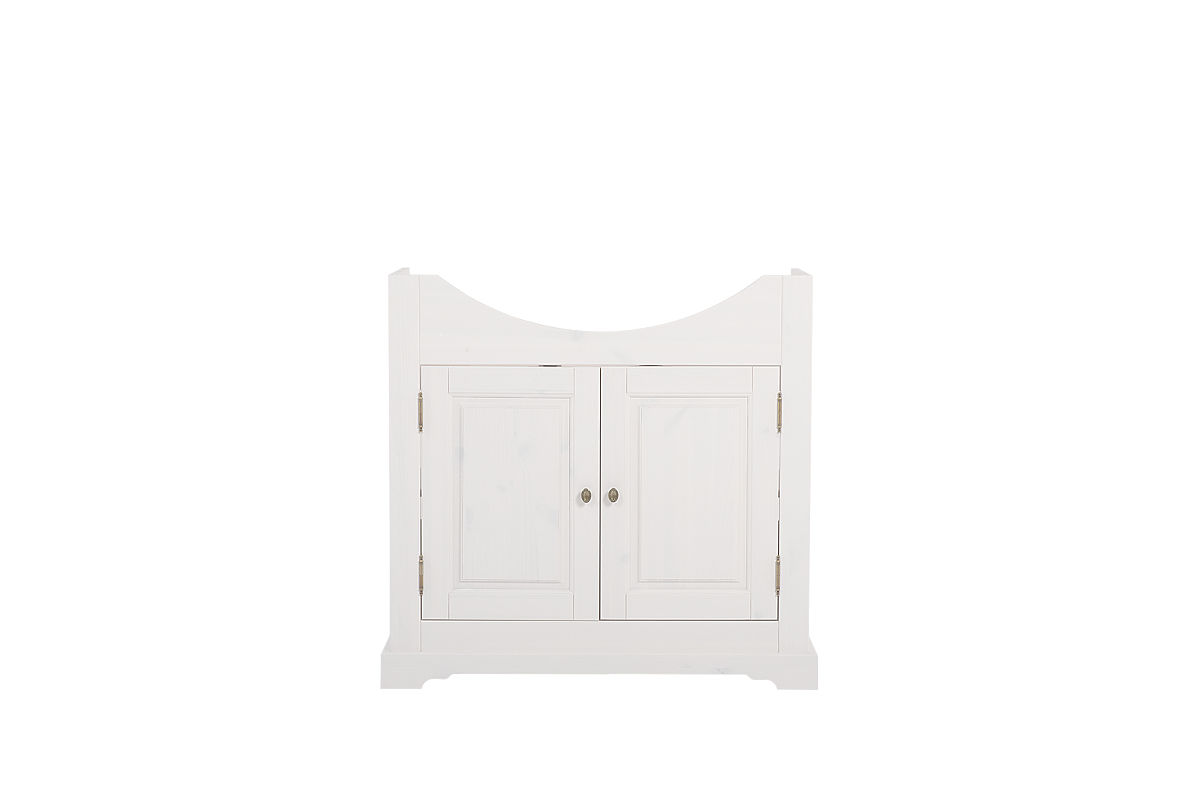 Szafka pod umywalkę z dwoma drzwiami, wykonana z drewna naturalnego. .. więcej