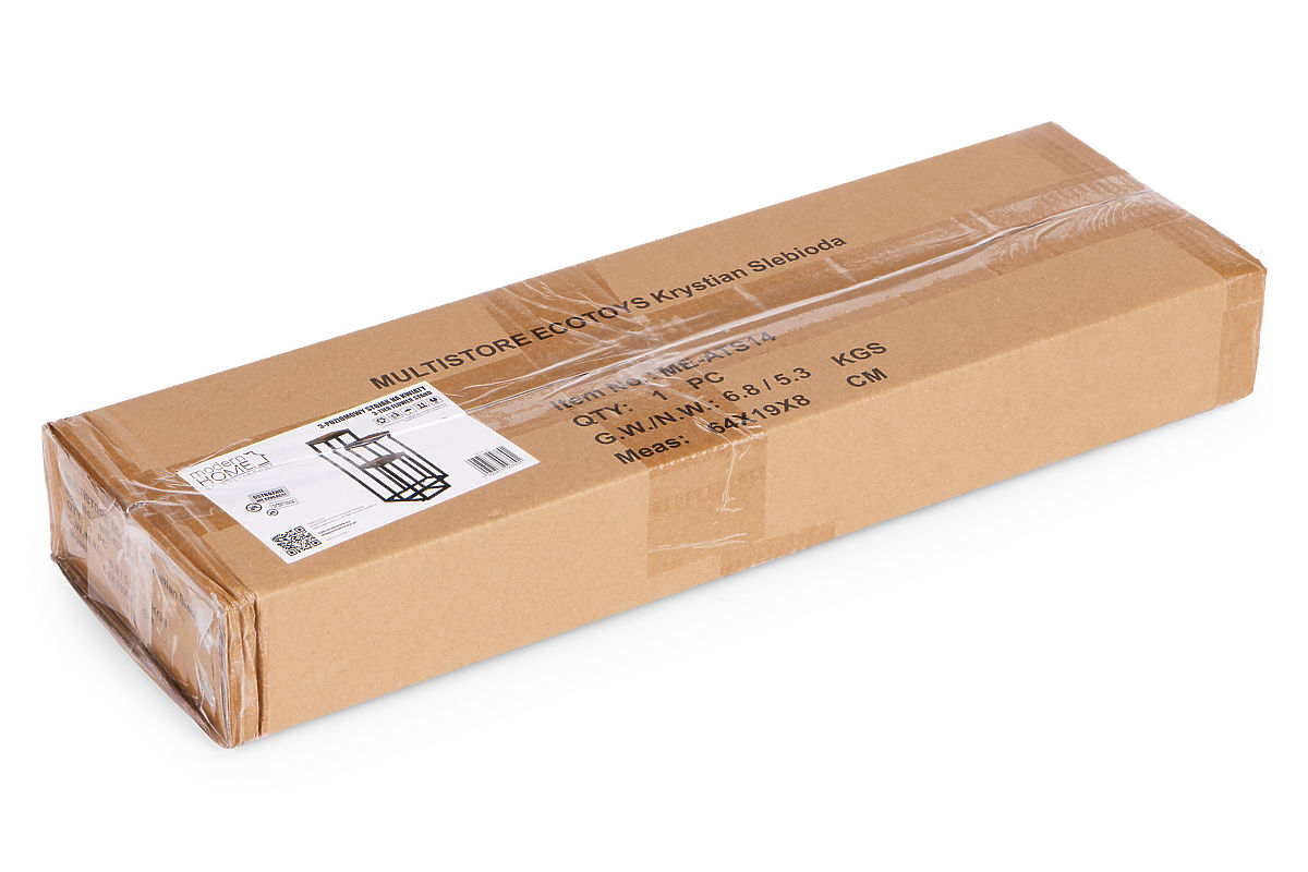 TRWAŁE MATERIAŁYStojak na kwiaty jest wykonany ze stali z powłoką proszkową, co zapewnia odporność na korozję i uszkodzenia mechaniczne. Półki z płyty wiórowej są wykończone w kolorze imitującym naturalne drewno, co podkreśla dekoracyjny, loftowy charakter mebla.