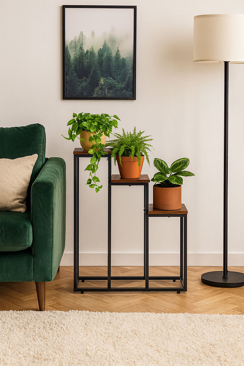 Stojak na kwiaty ModernHome doskonale pasuje do każdego pomieszczenia – od nowoczesnego salonu po stylowe biuro. Dzięki uniwersalnemu designowi i kompaktowym wymiarom pozwala maksymalnie wykorzystać dostępną przestrzeń i umożliwia efektowne aranżowanie kwiatów. Możesz na nim umieścić doniczki z ziołami w kuchni, paprocie w holu lub rośliny ozdobne w przedpokoju. To idealne rozwiązanie dla tych, którzy chcą wprowadzić do swojego otoczenia więcej zieleni i elegancji, ożywiając tym samym każde wnętrze. Dodaj go do swojego przestrzeni i ciesz się pięknem roślin każdego dnia.