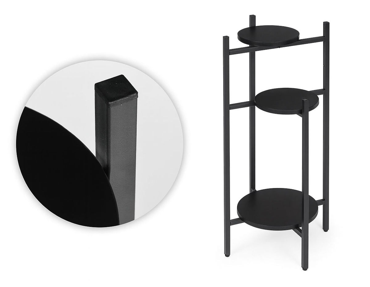 TRWAŁE MATERIAŁYStojak na kwiaty jest wykonany z malowanej proszkowo stali, co zapewnia odporność na korozję i uszkodzenia mechaniczne. Metalowe półki charakteryzują się wysoką trwałością i stabilnością, podkreślając nowoczesny charakter mebla.