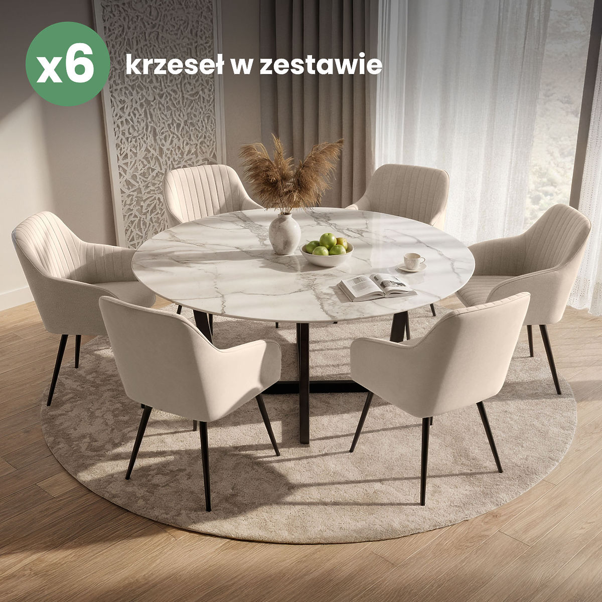 Lukahome.pl » Selfdalnia i kuchnia / Wyżywienie krzesło / 6x Aksamitne tapicerowane krzesło z przeszyciami Beżowe FLORENCE Czarne nogi