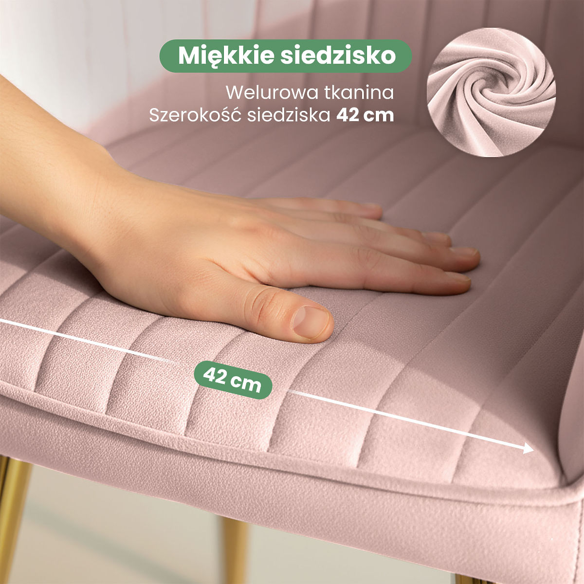 Aksamitne krzesło FLORENCE z pionowymi przeszyciami i złotymi nogami. .. więcej