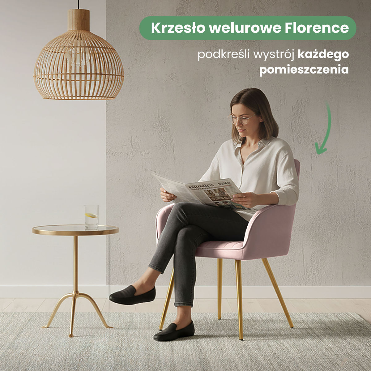 Aksamitne krzesło FLORENCE charakteryzuje się eleganckim tapicerowaniem z pionowymi przeszyciami, które nadają mu delikatny urok i styl. W zależności od wariantu kolorystycznego nogi krzesła mogą być czarne lub złote, co nadaje mu jeszcze bardziej wyjątkowy wygląd. Aksamitne krzesło Florence podkreśli wystrój każdej nowoczesnej jadalni i przemieni skromne aranżacje w interesujące i stylowe wnętrze. Ten model najlepiej pasuje do wystroju w stylu nowoczesnym, soft modern lub glamour.