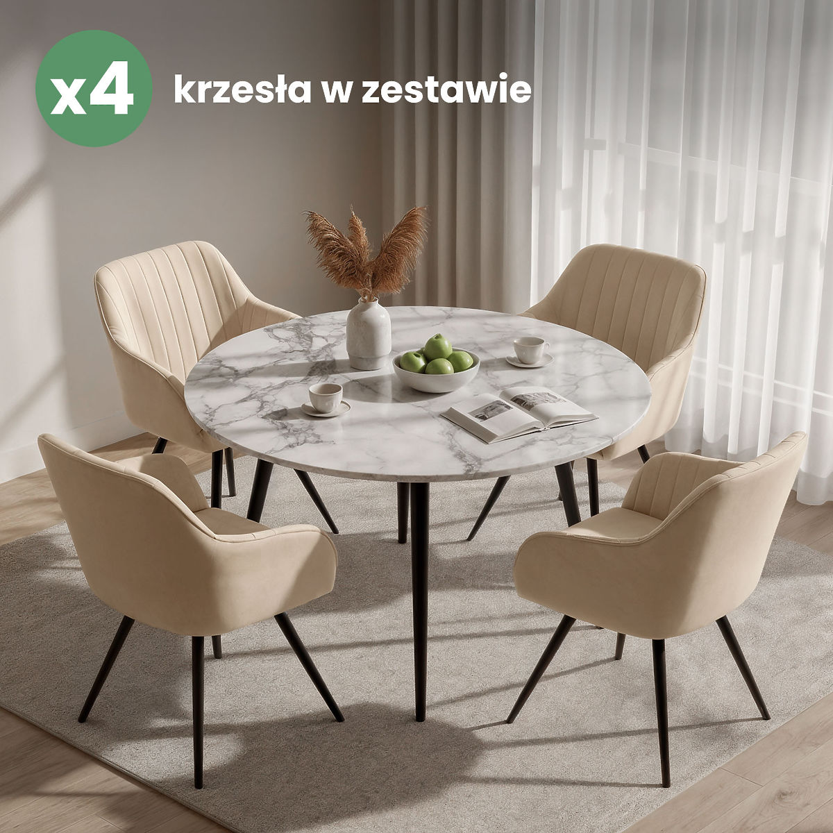 Aksamitne krzesła to połączenie elegancji i komfortu, które dobrze pasuje do nowoczesnych i klasycznych wnętrz. Miękkie obicie nadaje im przytulny charakter, a prosty kształt zapewnia uniwersalność zastosowania. Są stylowym i praktycznym dodatkiem do jadalni, salonu lub przestrzeni biurowych.