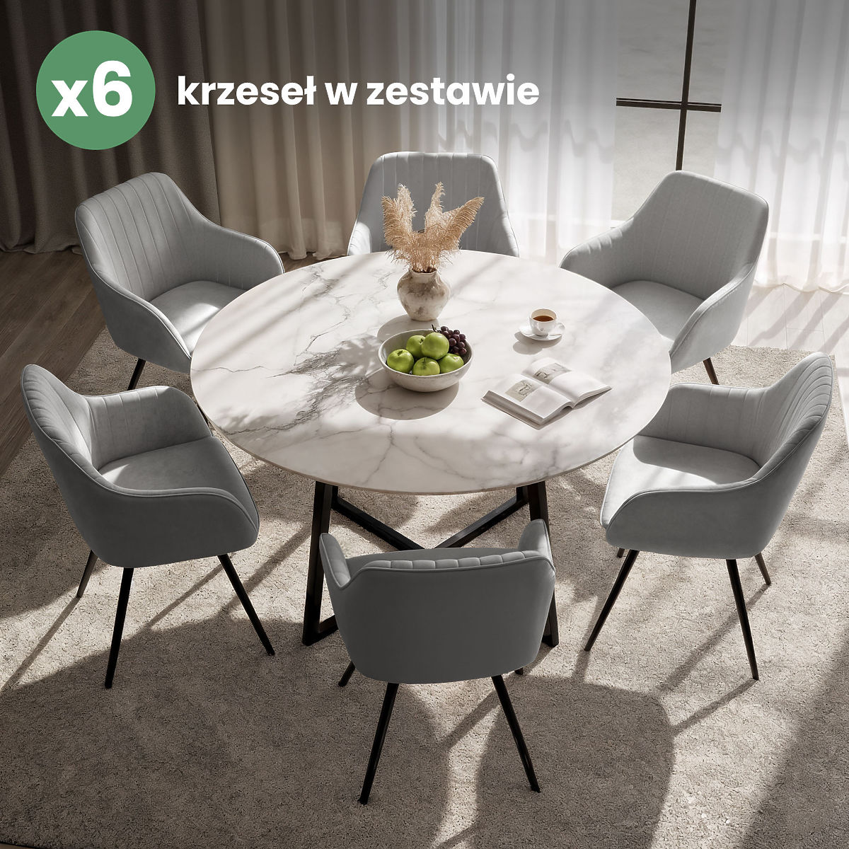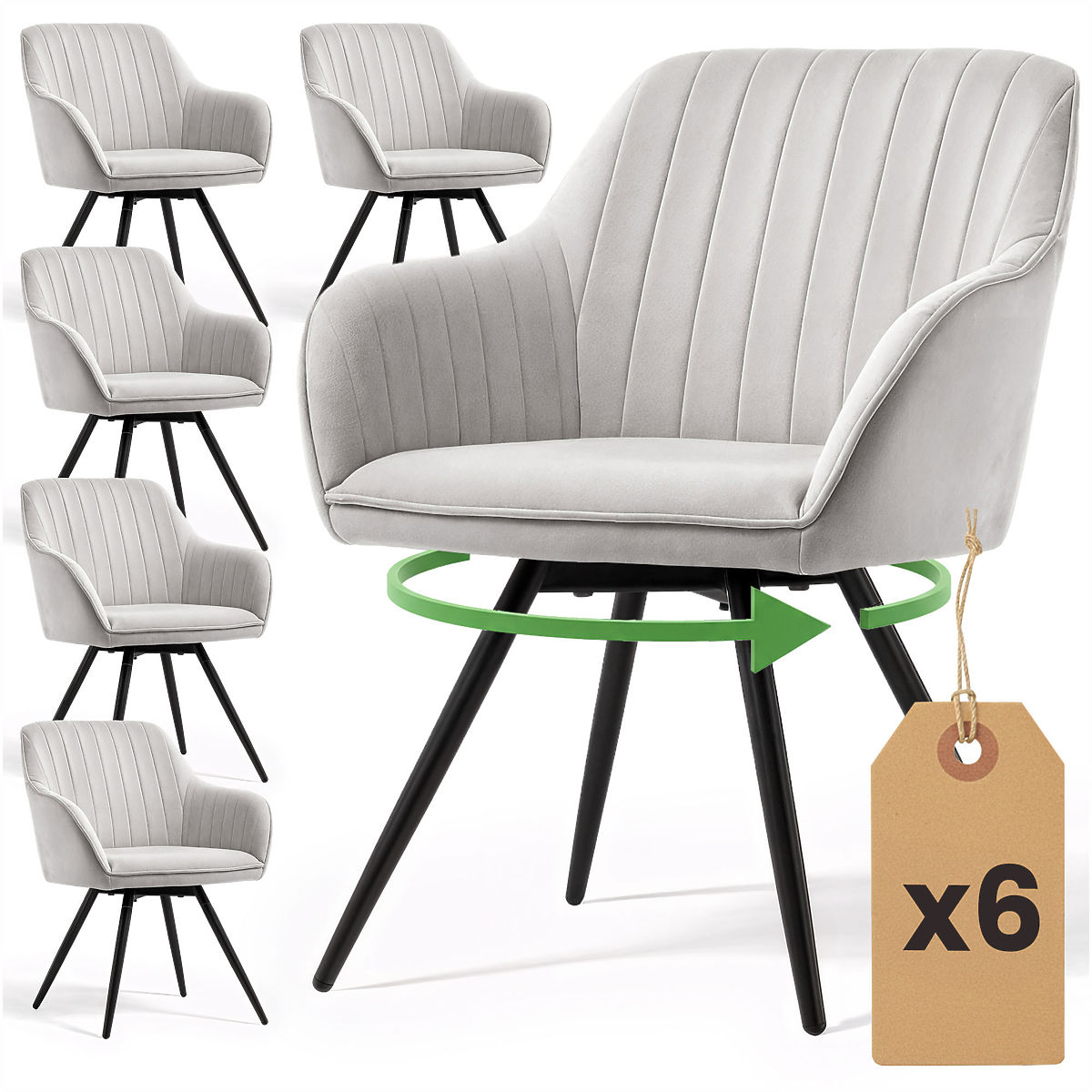 Lukahome.pl » Selfdalnia i kuchnia / Wyżywienie krzesło / 6x Aksamitne obrotowe krzesło z przeszyciami Szare TURNO Czarne nogi