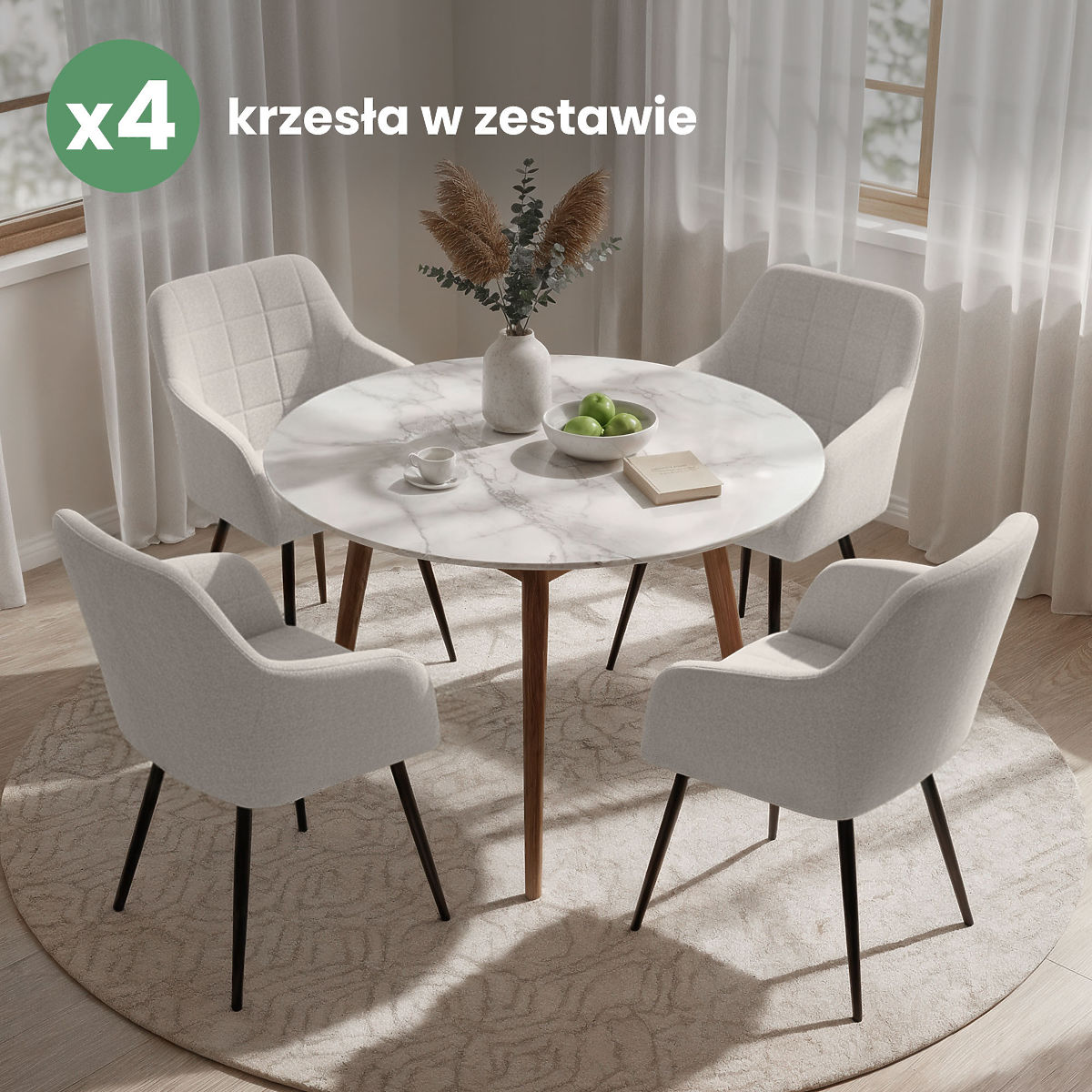 Lukahome.pl » Selfdalnia i kuchnia / Wyżywienie krzesło / 4x Tapicerowane krzesło z kwadratowym pikowaniem Kremowe LUXANO Czarne nogi tkanina Lumos