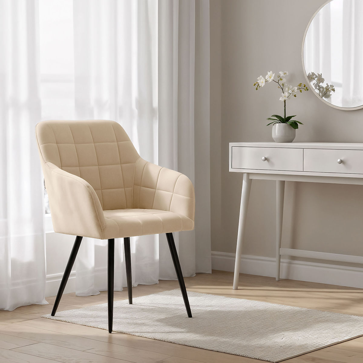Tapicerowane krzesła łączą estetyczny wygląd z komfortem użytkowania i dobrze wpisują się w różne style wnętrz. Ich uniwersalna forma sprawia, że są odpowiednie do jadalni, salonu lub przestrzeni biurowych. Dostępne są w dwóch wariantach materiałowych – w tkaninie Lumos lub w welurze.