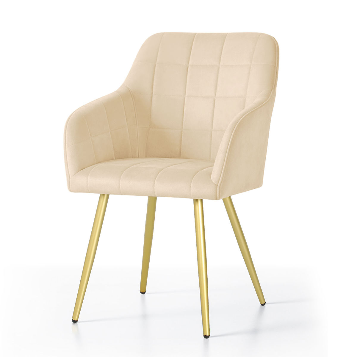 Lukahome.pl » Selfdalnia i kuchnia / Wyżywienie krzesło / 6x Tapicerowane krzesło z kwadratowym pikowaniem Beżowe LUXANO Złote nogi