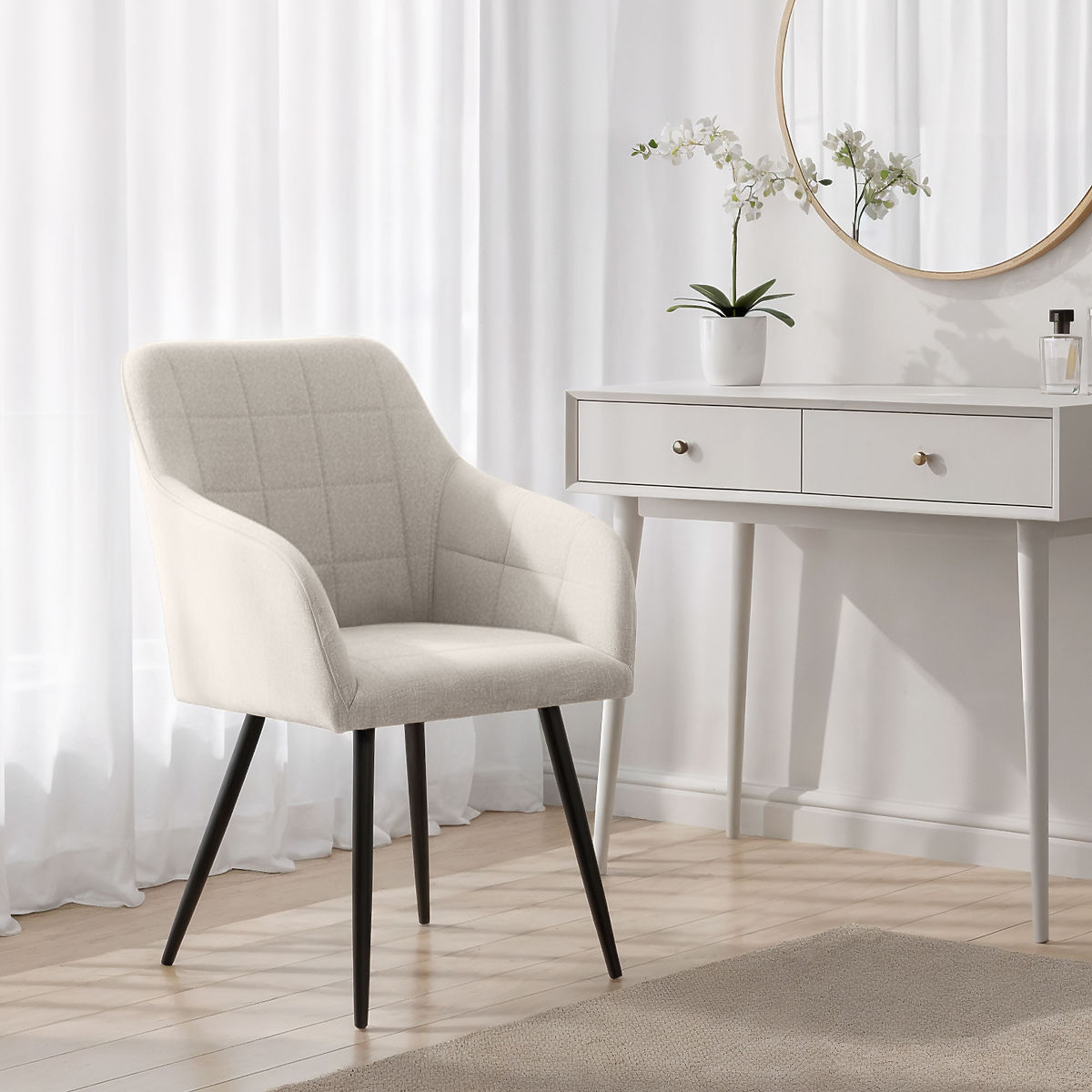 Tapicerowane krzesła łączą estetyczny wygląd z komfortem użytkowania i dobrze pasują do różnych stylów wnętrz. Ich uniwersalny kształt czyni je odpowiednimi do jadalni, salonów lub przestrzeni biurowych. Dostępne są w dwóch wariantach materiałowych – z tkaniny Lumos lub z weluru.