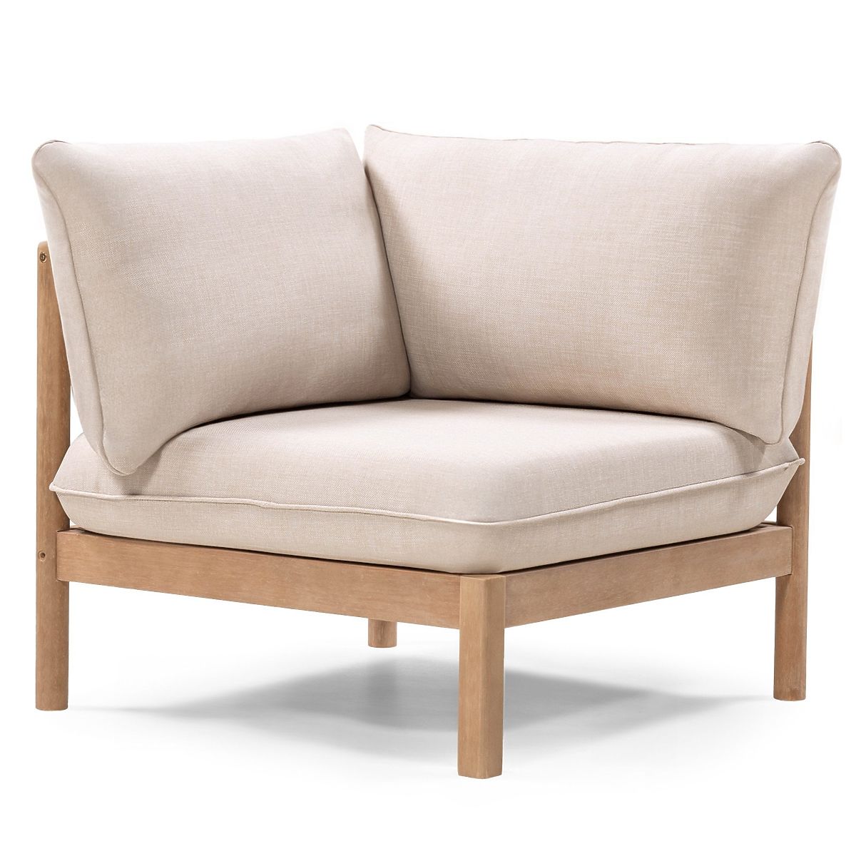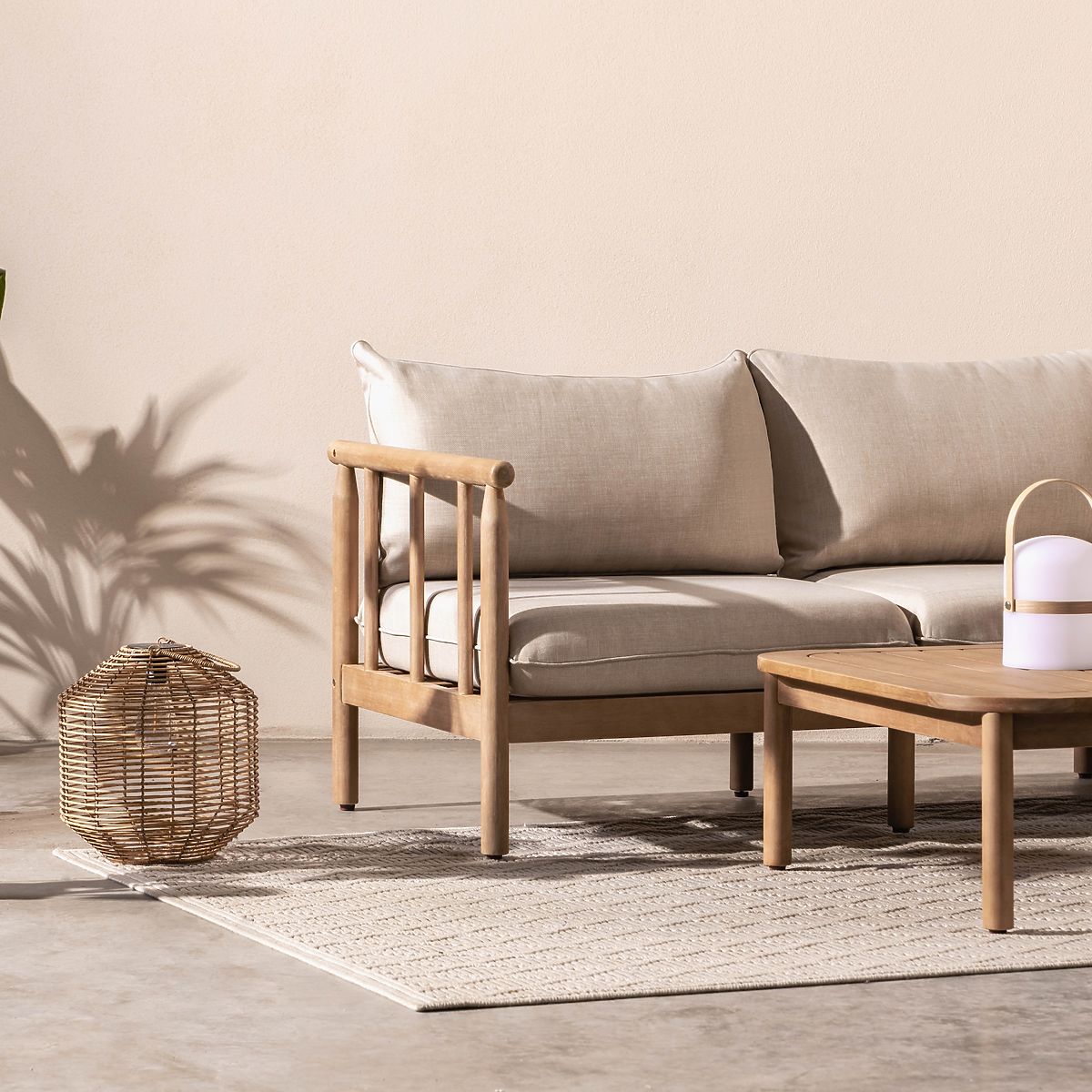 Ogrodowa narożna sofa z stolikiem Mortlake, drewno eukaliptusowe FSC, wygląd tekowy, jasnobeżowy/p