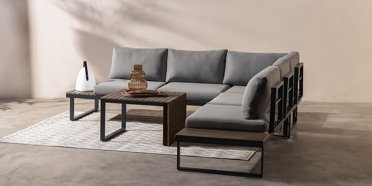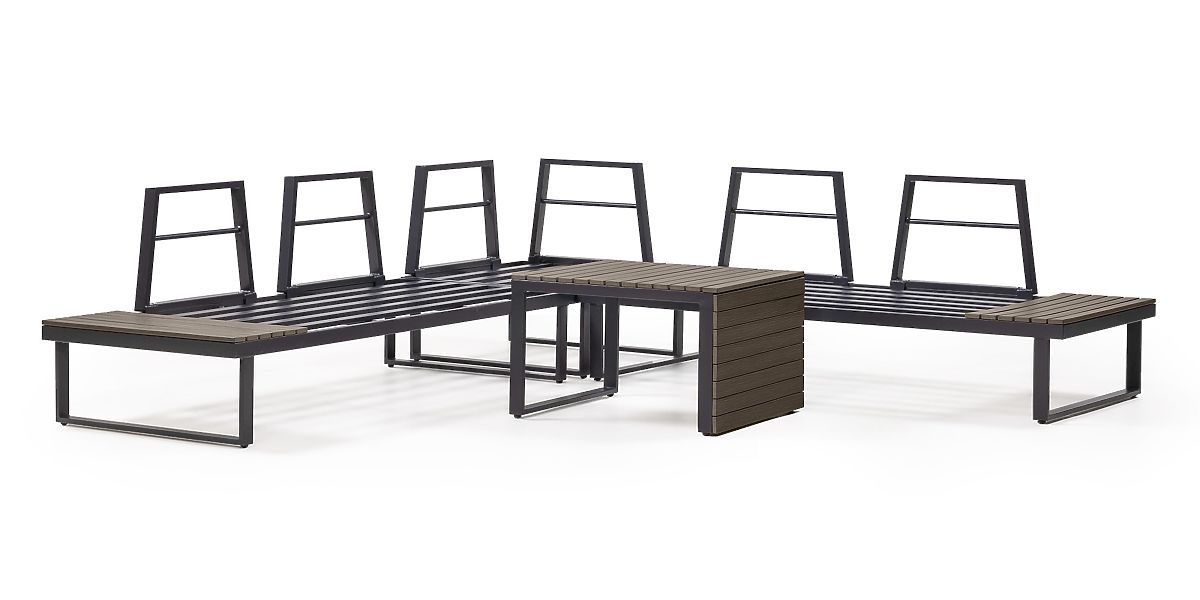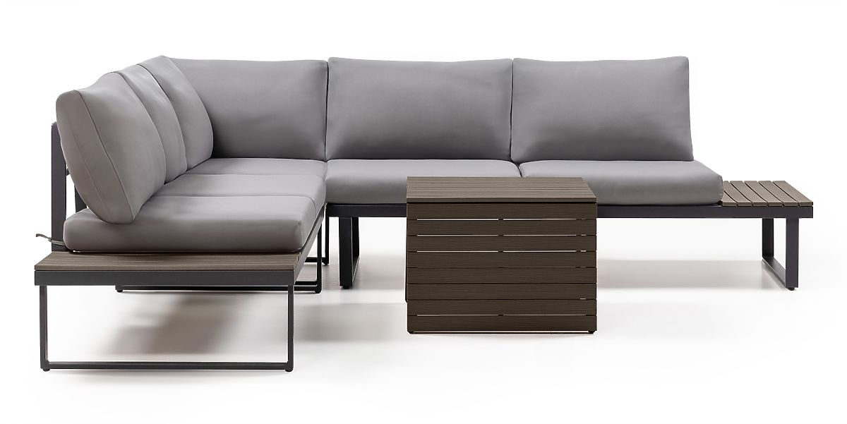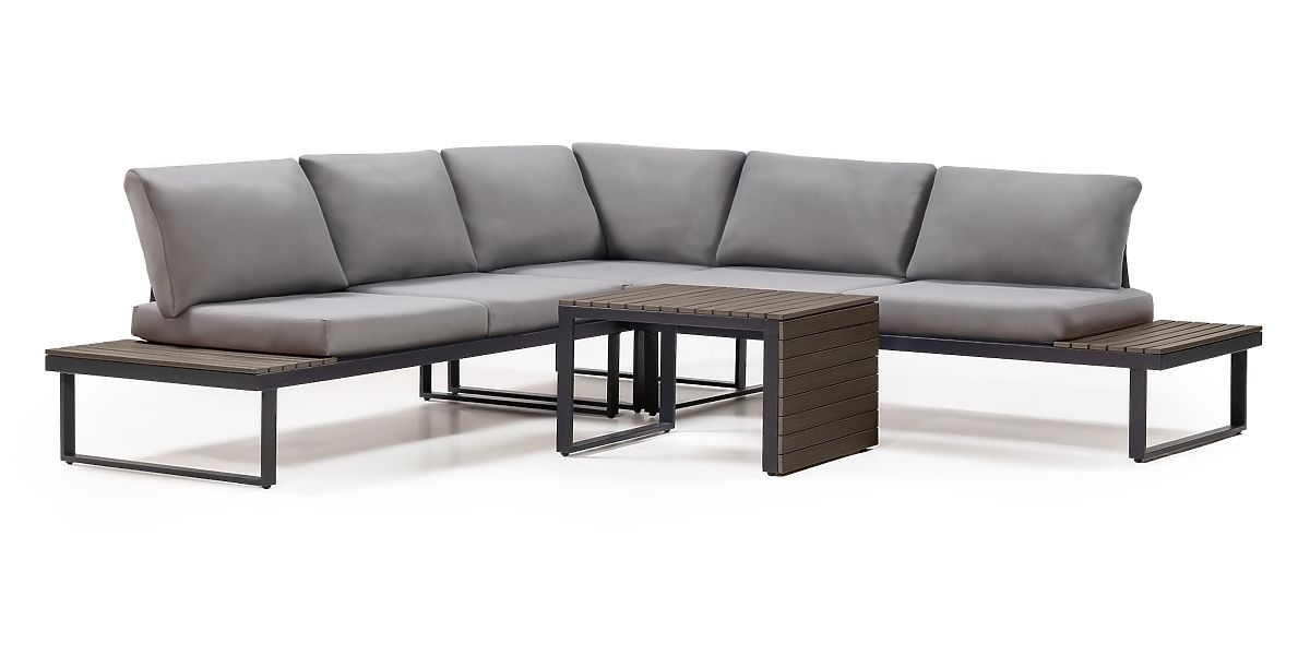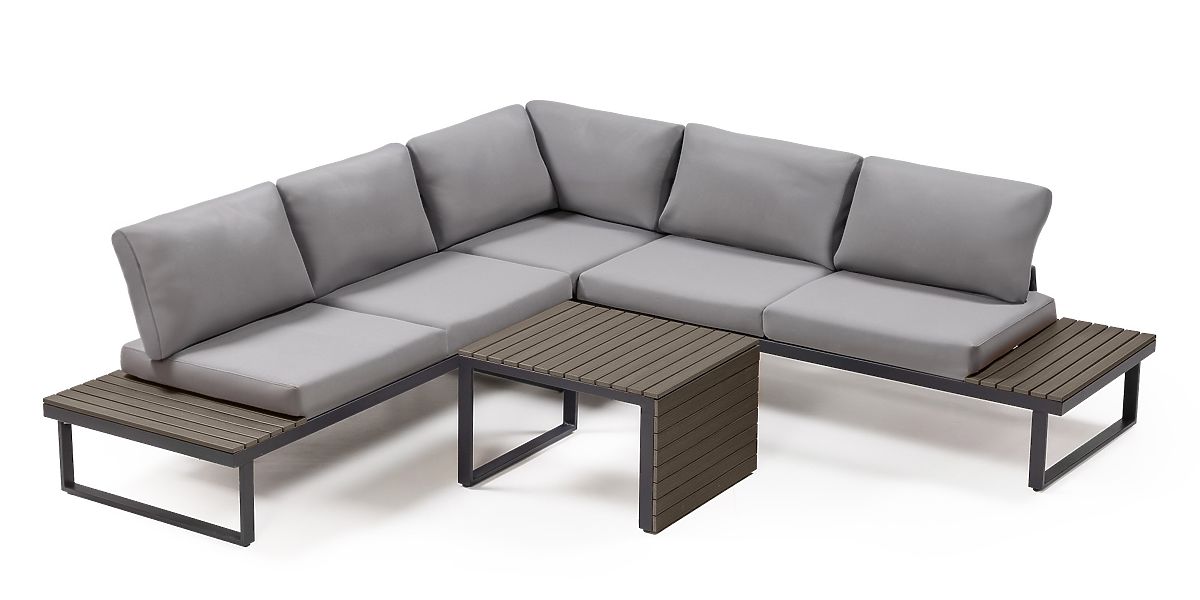 Lukahome.pl » Meble ogrodowe / Sofy ogrodowe / Ogrodowa narożna sofa z stolikiem Valongo, polywood, spun-poly, jasnoszary/antracytowy