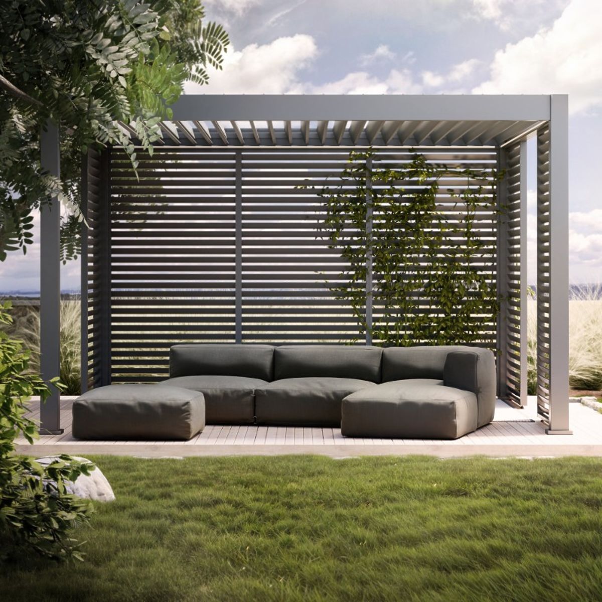 Lukahome.pl » Meble ogrodowe / Sofy ogrodowe / Modułowa narożna sofa ogrodowa Vacuum III z pokryciem, szara
