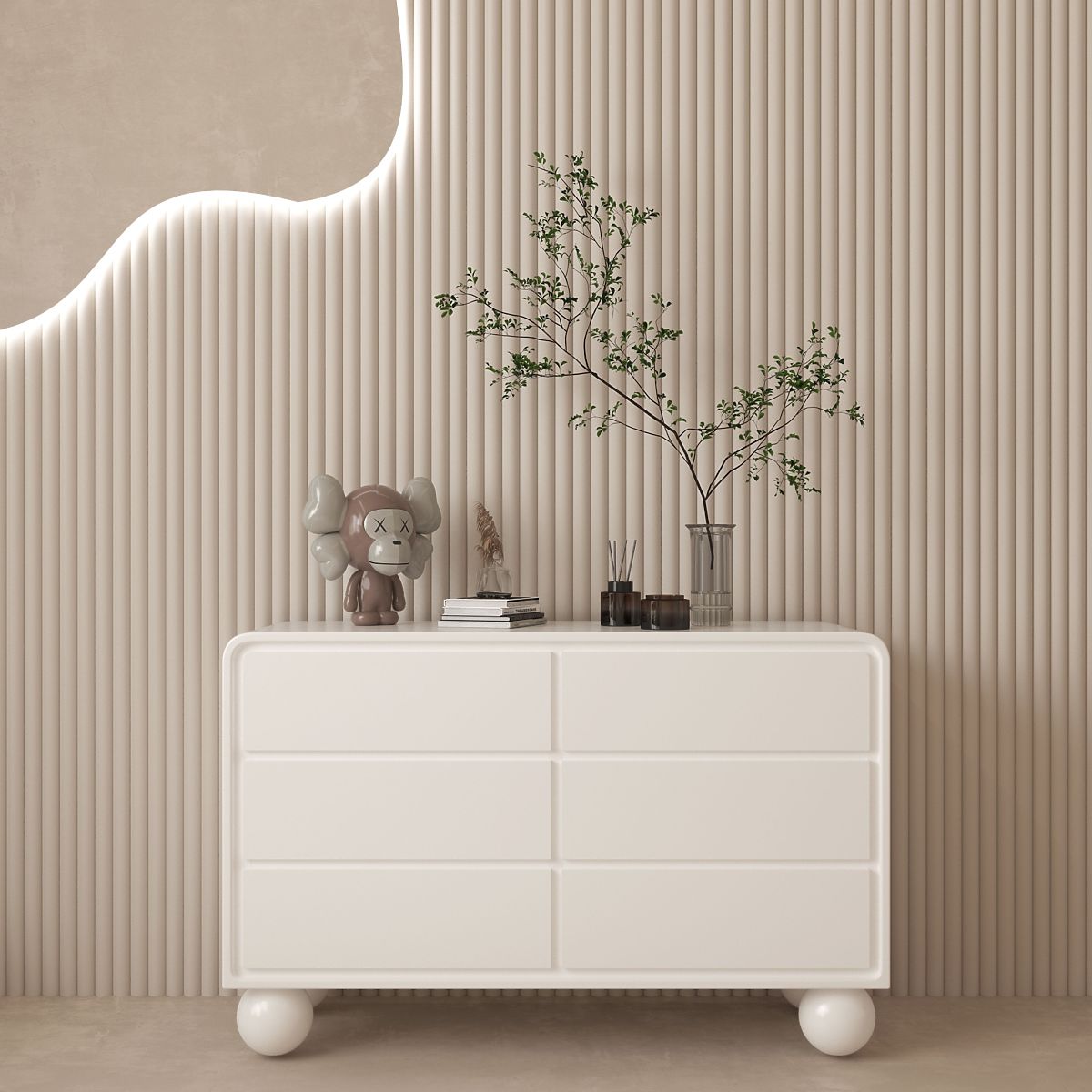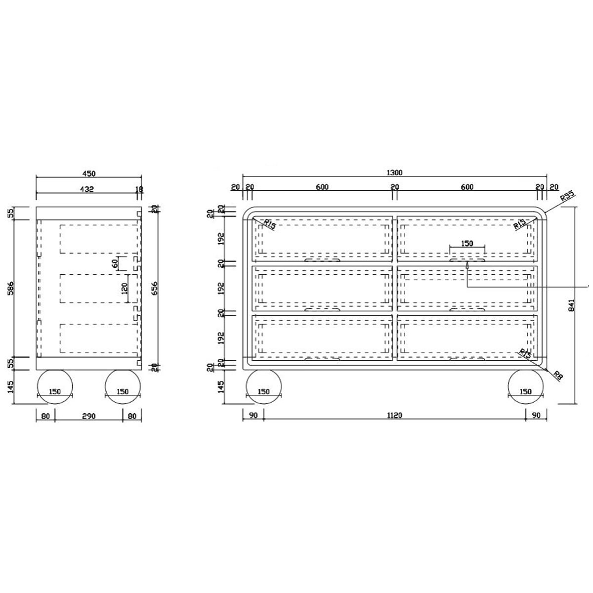 Komoda Lauria z sześcioma przestronnymi szufladami i zaokrąglonymi krawędziami. .. więcej