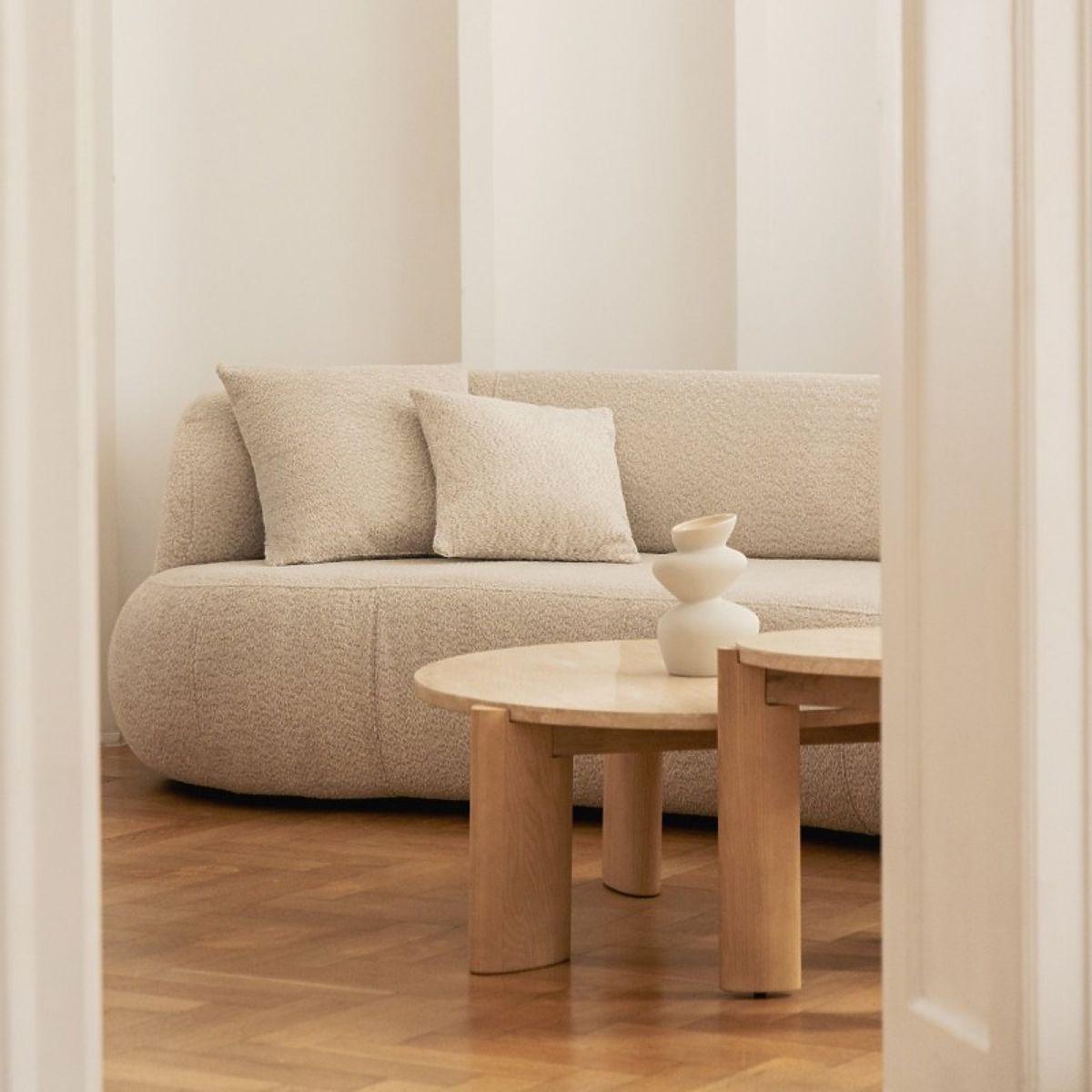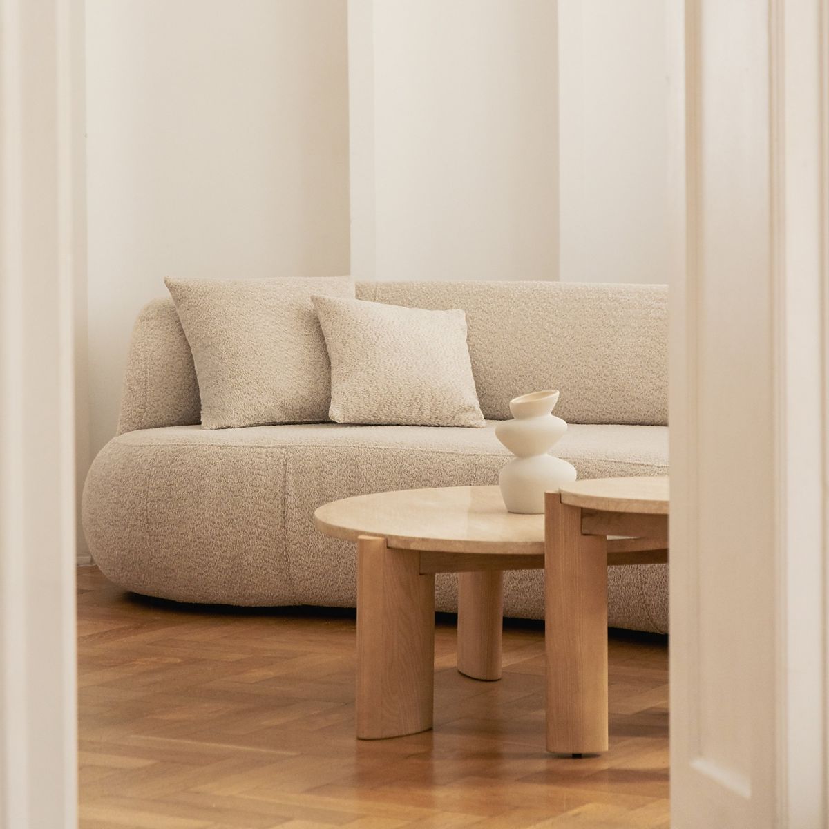 Lukahome.pl » Stoły i stoliki kawowe / Stoliki kawowe / Stolik kawowy Medley 90 cm, okrągły, trawertyn/jesion