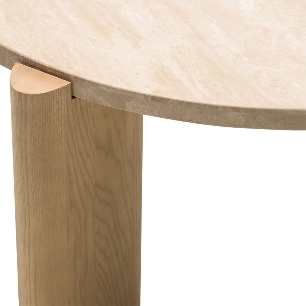 Stolik Medley z okrągłym blatem z trawertynu i nogami z jesionu. .. więcej