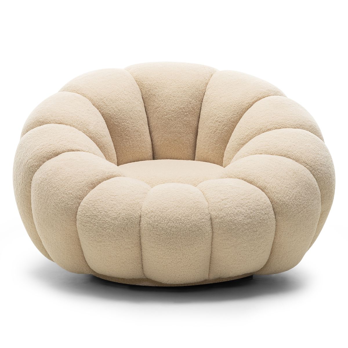 Lukahome.pl » Fotele i siedziska / Fotele / Fotel relaksacyjny Venezia beżowy z obrotową podstawą, boucle, zaokrąglone kształty