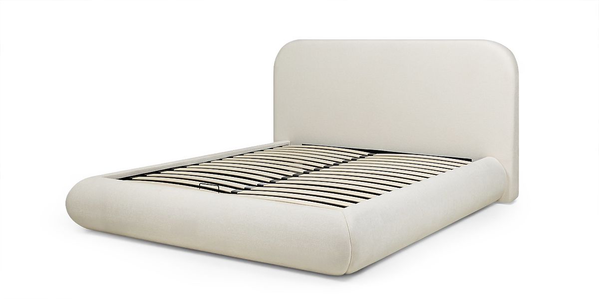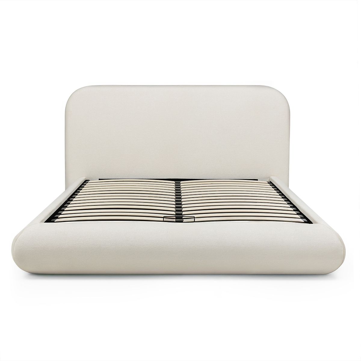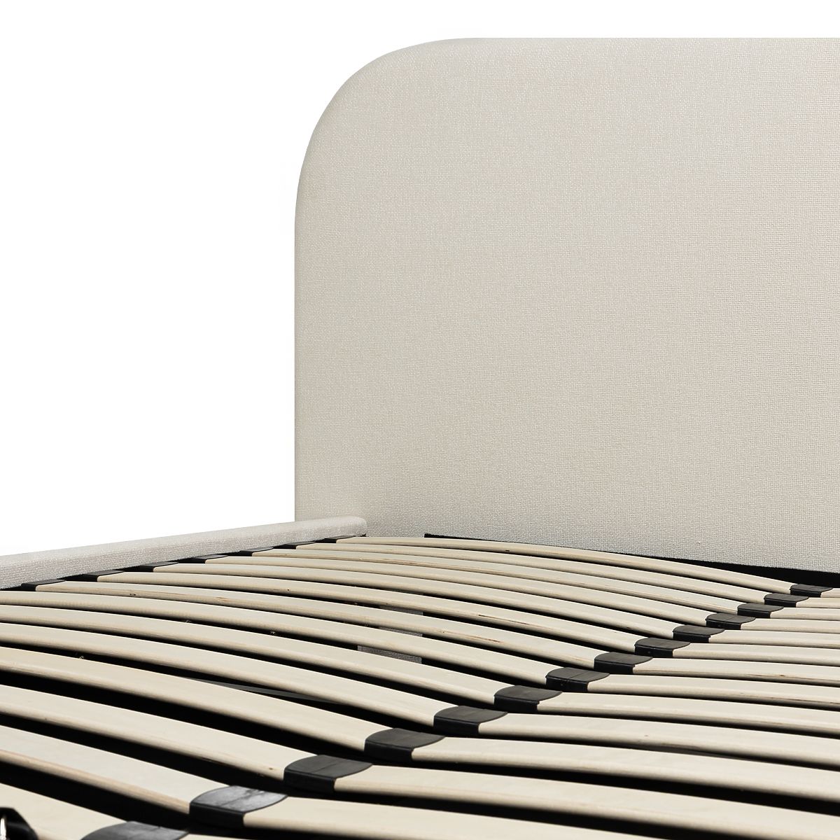 Lukahome.pl » Łóżka / Łóżka podwójne / Łóżka 160x200 / Tapicerowane łóżko Lumi 160x200 cm, z stelażem i schowkiem, zaokrąglone, jasnobeżowe