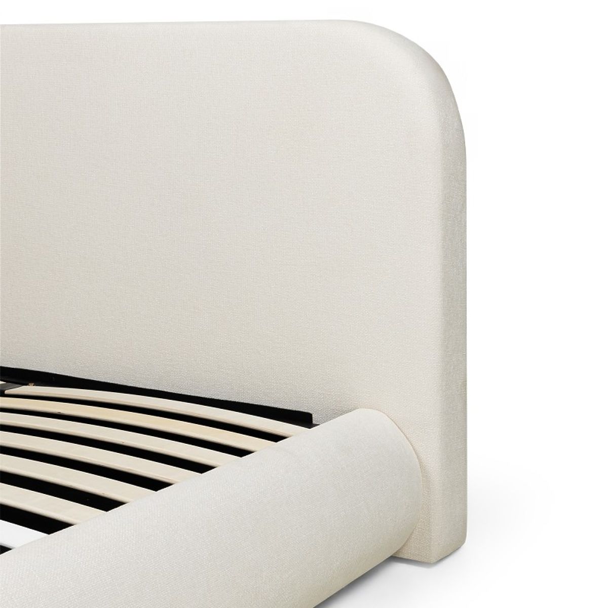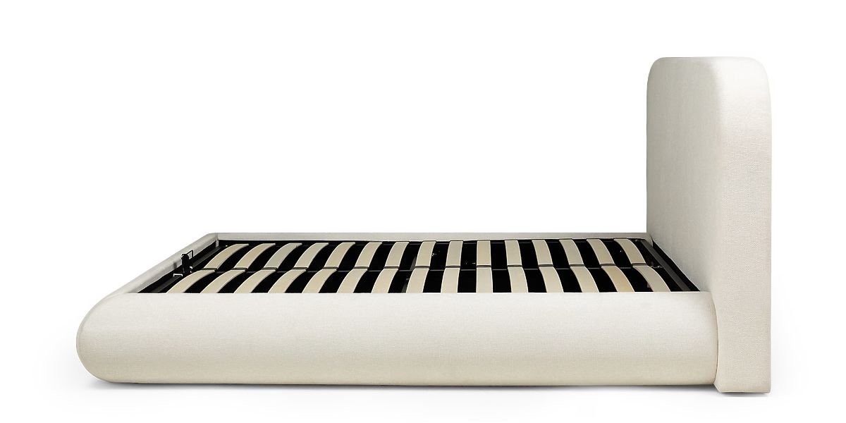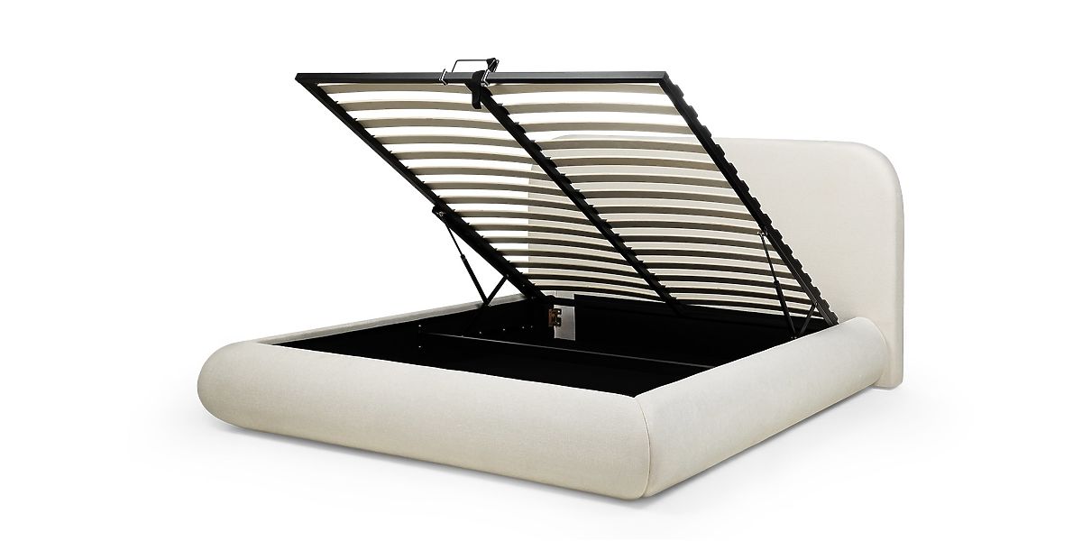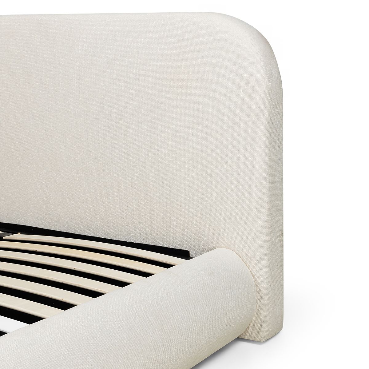 Lukahome.pl » Łóżka / Łóżka podwójne / Łóżka 160x200 / Tapicerowane łóżko Lumi 160x200 cm, z stelażem i schowkiem, zaokrąglone, jasnobeżowe